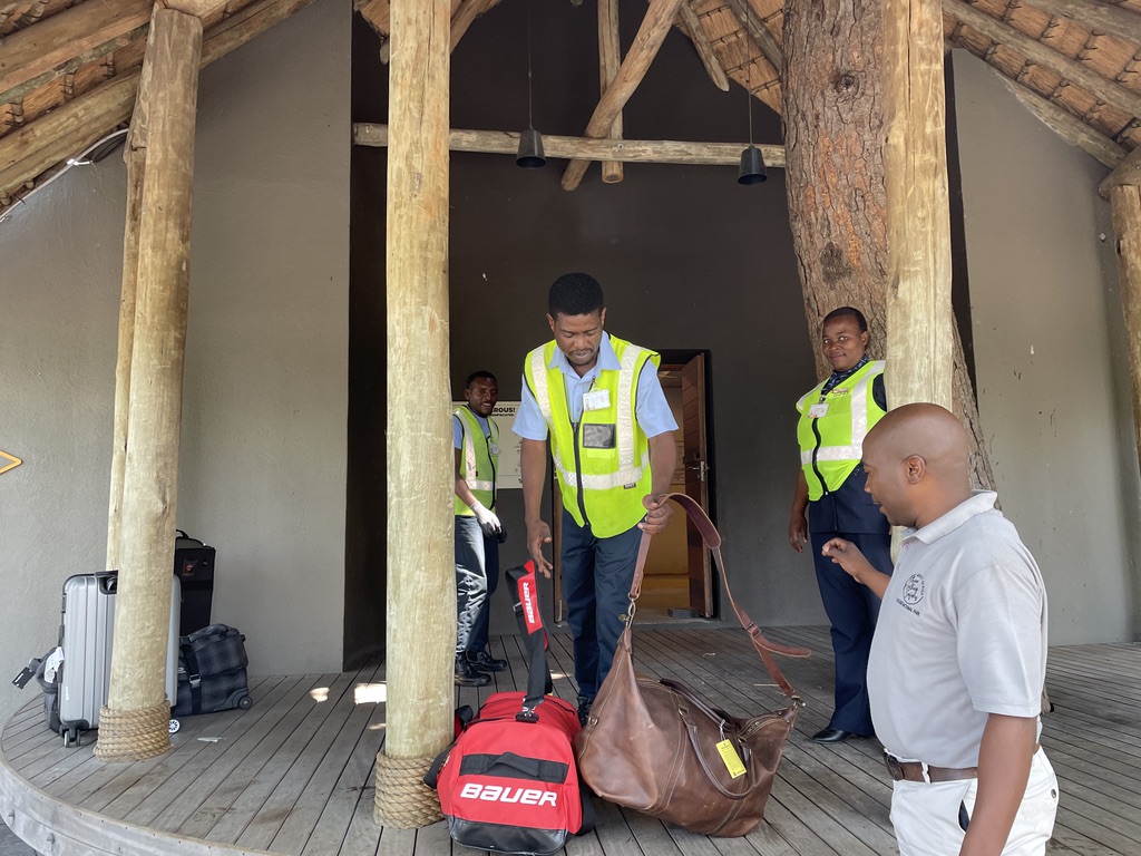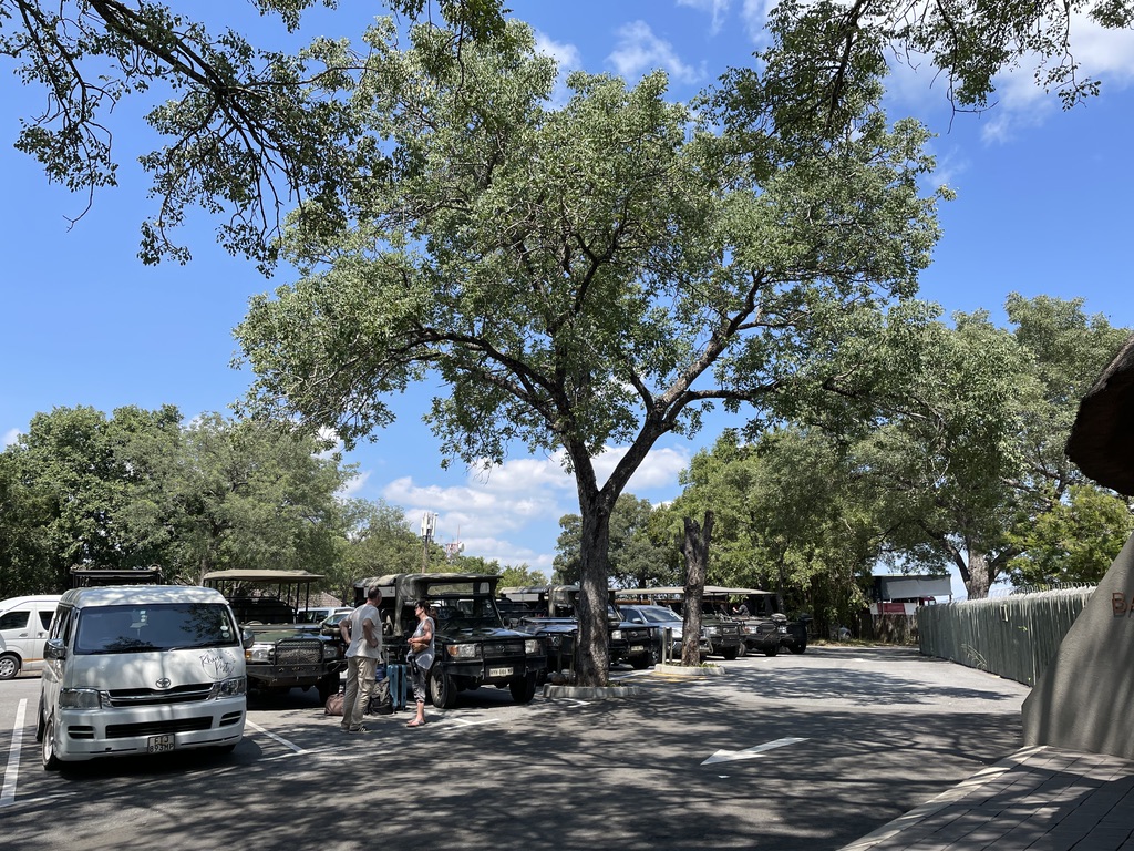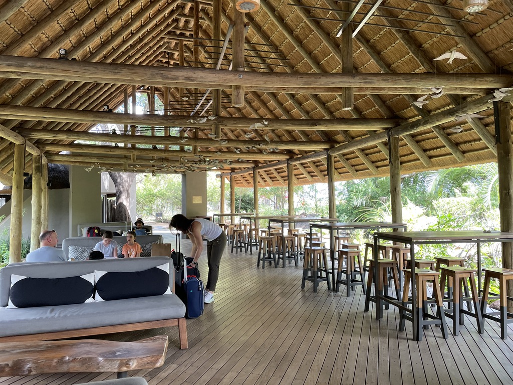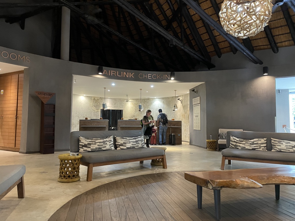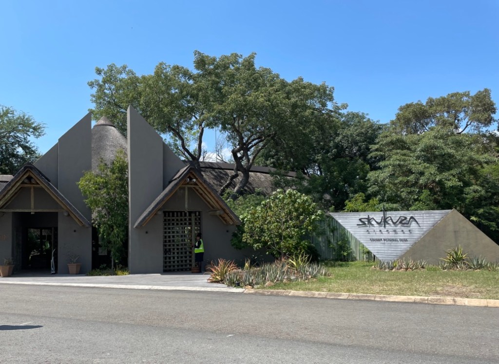 L’aéroport le plus proche est celui de Skukuza, à 1/2 heure de route. Et le moins qu’on puisse dire, c’est que le terminal est original ! Ici, pas de tapis pour les bagages et des voitures de safari sur le parking. Au retour, pas vraiment la queue à l’enregistrement et la salle d’embarquement est dans le jardin.