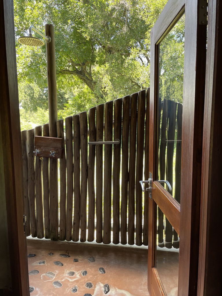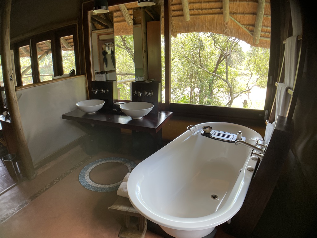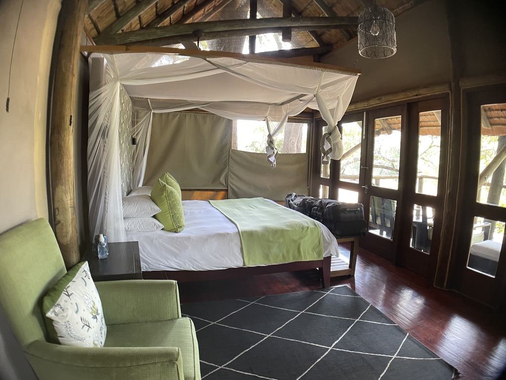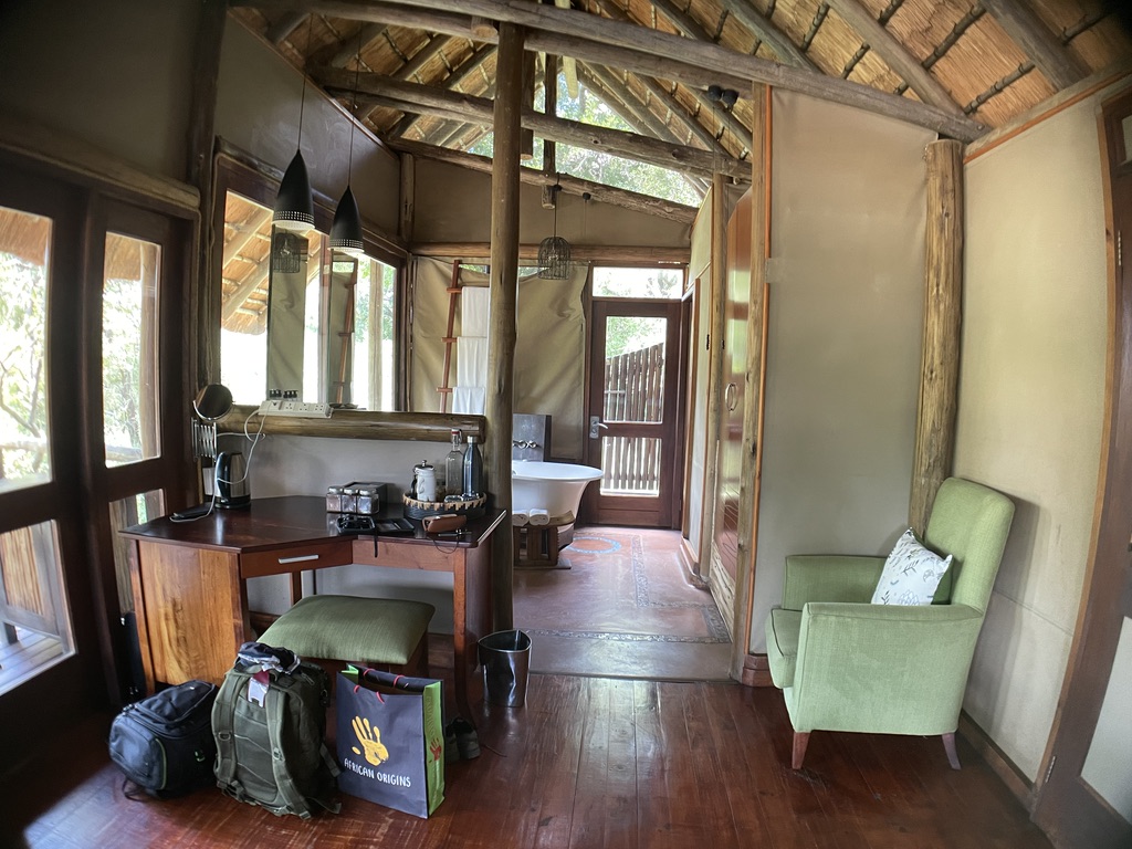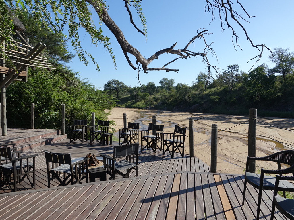 Il existe dans le parc national un certain nombre de lodges privés, offrant une expérience similaire à celle des réserves adjacentes. Nous avons choisi le Rhino Post Safari Lodge, un lodge authentique, bien intégré sur les berges de la rivière Mutlumuvi.