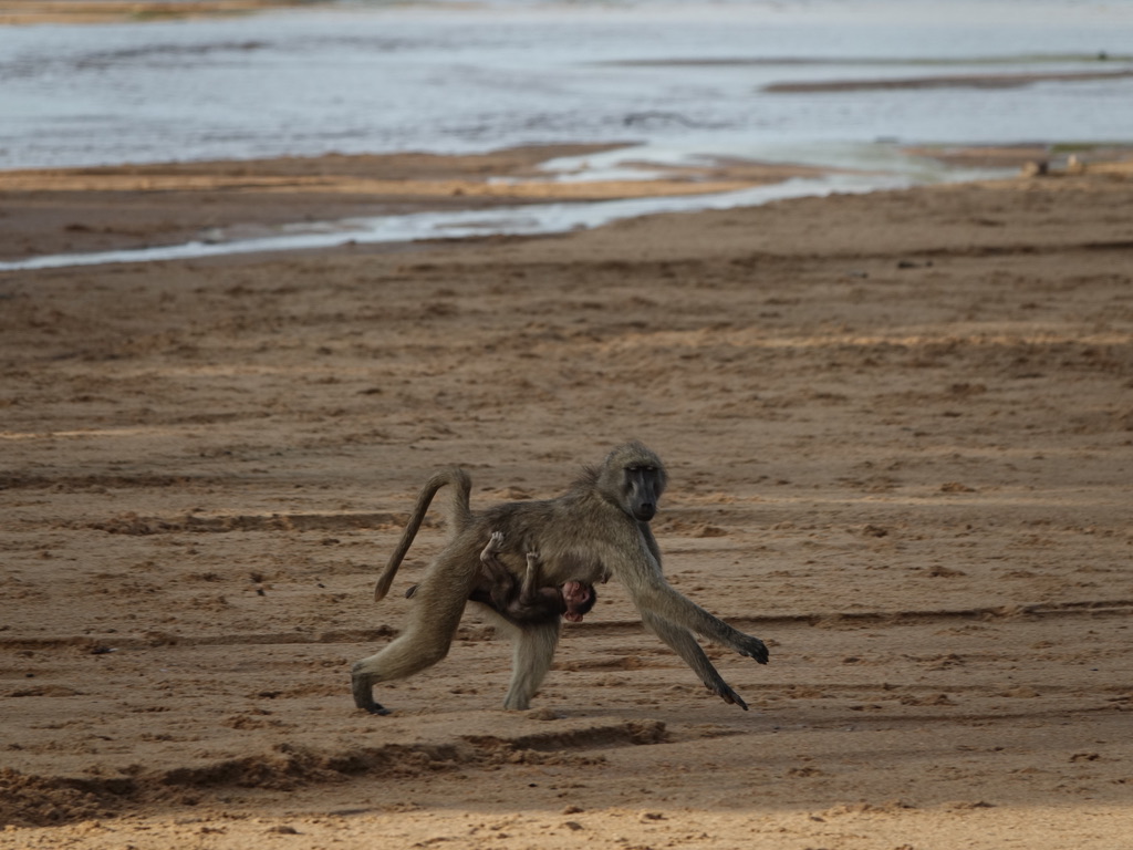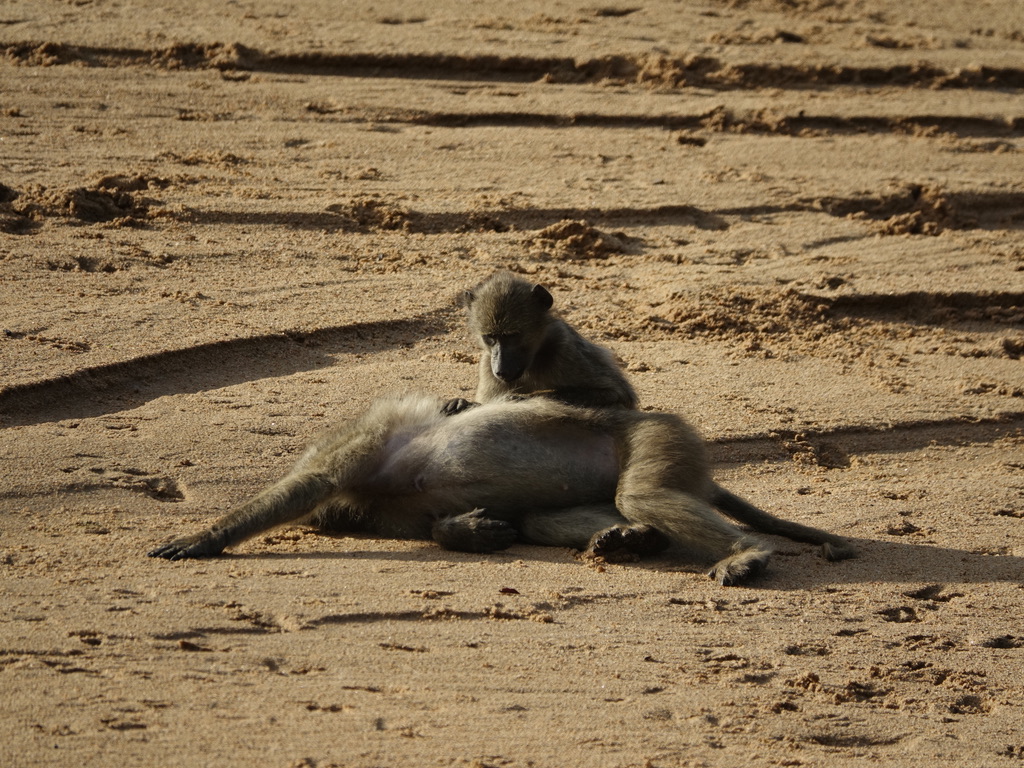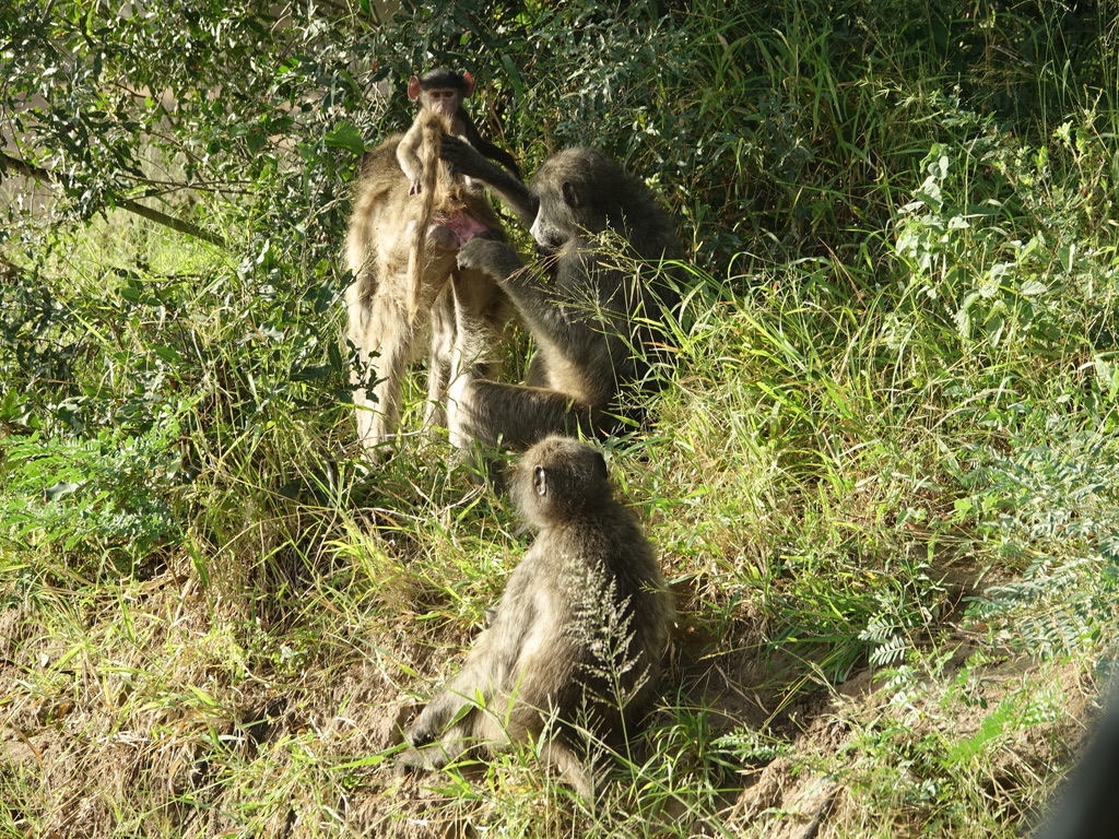 … et une grande famille de babouins, avec des comportements divers : grooming, transport de bébé, examen gynécologique (!)…