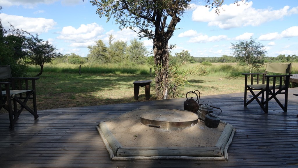 Toutes les tentes ont une vue directe sur la plaine de Timbetene et sa citerne qui attire les éléphants. Le camp est d’ailleurs sécurisé par une legère clôture électrique, qui le protège des éléphants et des buffles uniquement.