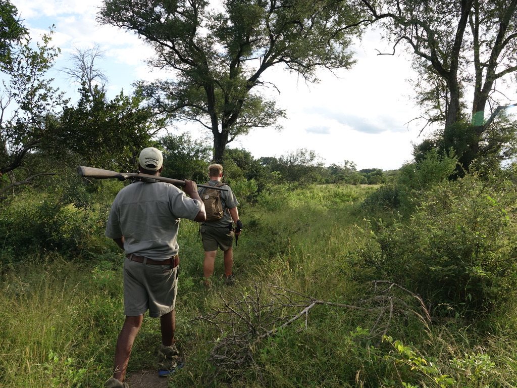 Suivre la piste d’un buffle ou d’un hippopotame est intéressant. Les rangers montrent les traces, expliquent les marquages territoriaux, décryptent les passages etc. Mais quand le bush se fait plus épais, il faut abandonner car la rencontre serait dangereuse. J’ai apprécié l’expérience mais avec le sentiment de prendre des risques pour finalement peu de choses. Daryl nous conseille de revenir en hiver, quand la végétation sèche laisse voir les animaux plus facilement et qu’ils se regroupent autour des points d’eau.