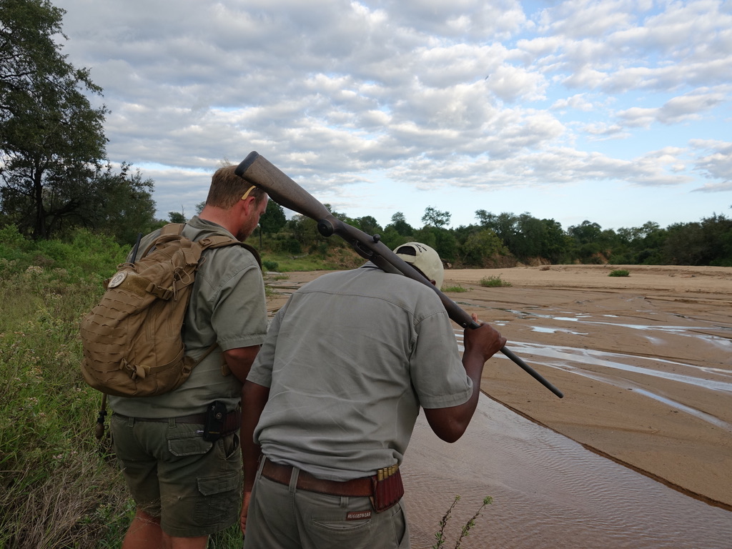 Nous avons eu l’occasion de vivre une expérience intense quand nous sommes tombés à l’improviste sur un buffle. Daryl et Orance ont chargé leurs fusils et se sont mis à hurler « Voetsek ». C’est un mot en afrikaans qui veut dire « fous le camp », le cri du coeur en la circonstance ! Pour les linguistes, quelques infos sur l’étymologie de ce terme 😉