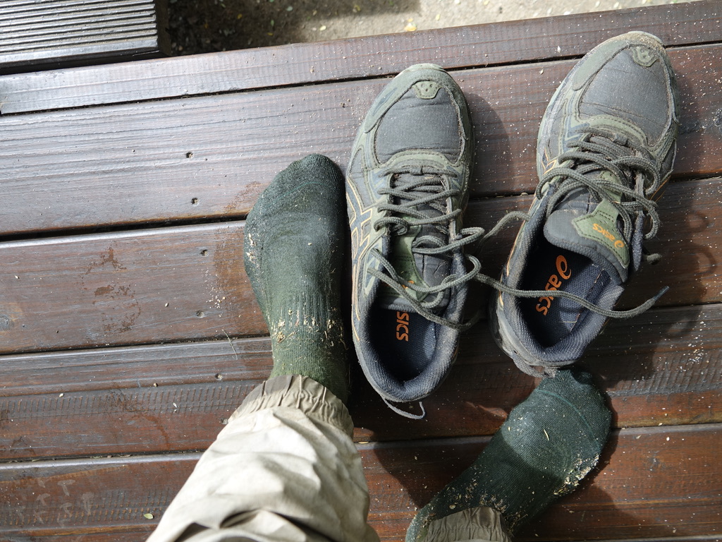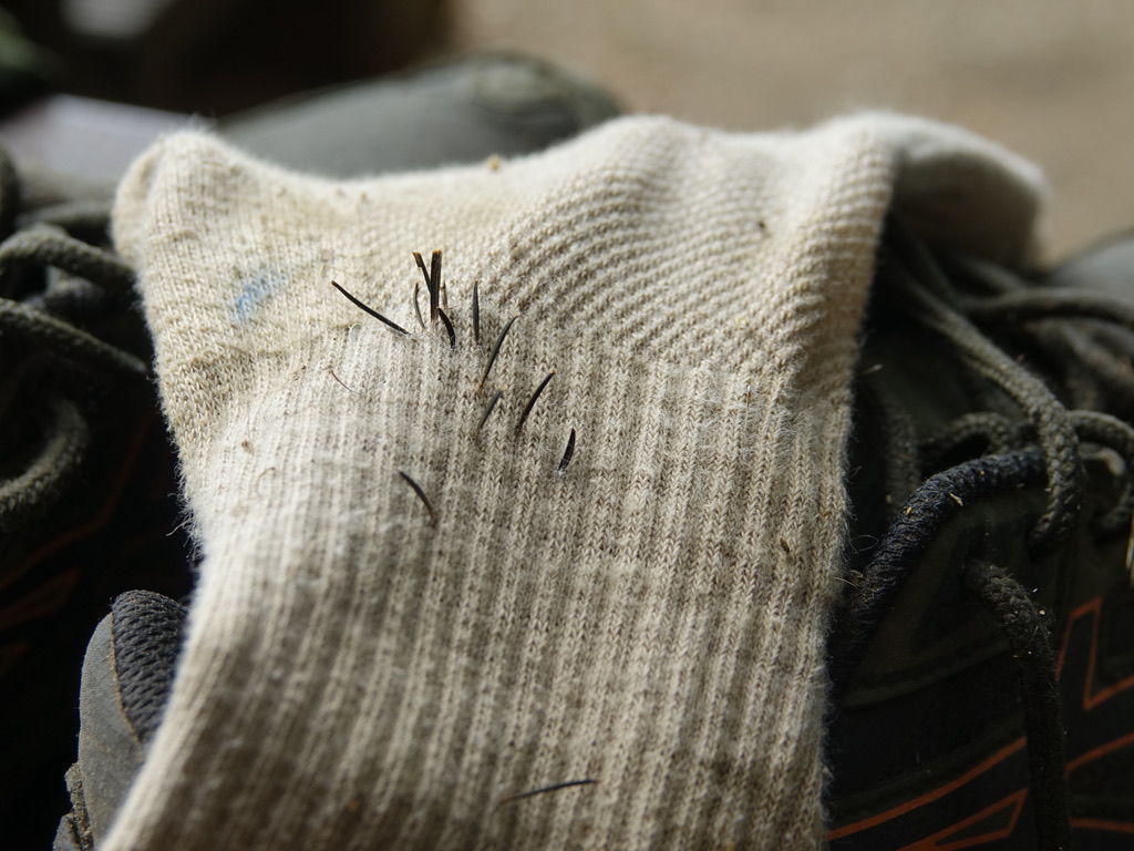 Au retour, il reste à mettre chaussettes et chaussures à sécher… ou à oter les piquants 🙂