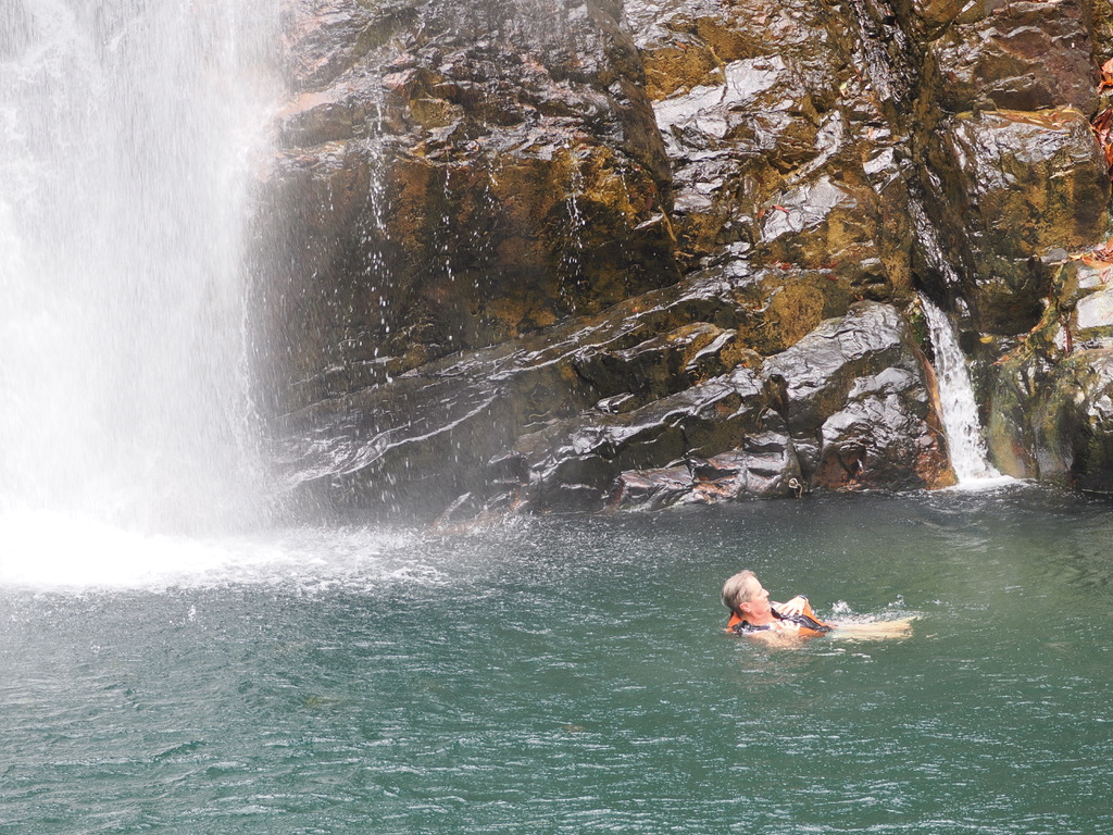 Il fait tellement chaud que l’entrée dans l’eau est saisissante, pourtant elle doit faire 25 degrés. Nous passons 20 minutes à barboter. Patrick est resté au sec pour faire les photos 🙂 – dommage,car nous avons trouvé une source d’eau chaude à la base de la falaise.