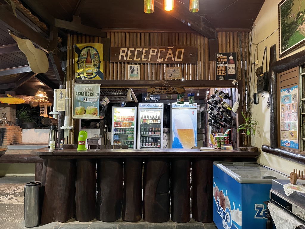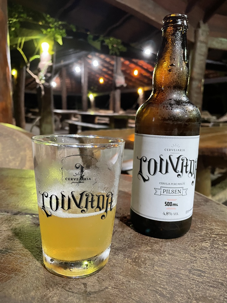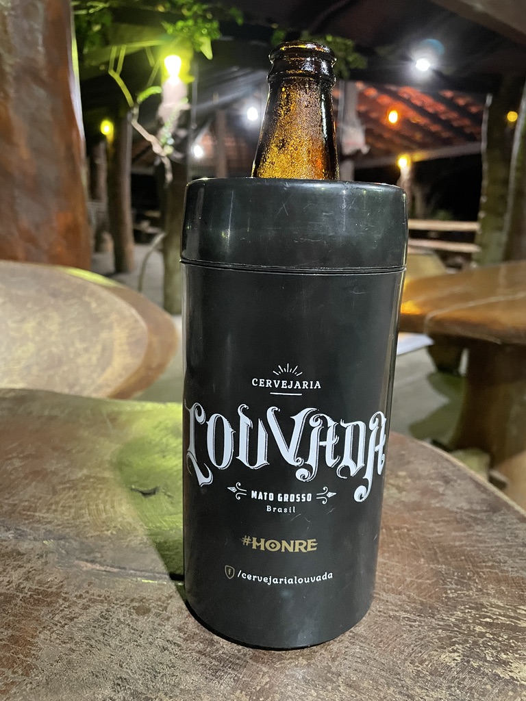 Nous terminons la journée avec une bière locale « bem gelado ». C’est une obsession brésilienne de garder la bière bien froide 🙂 – votre bouteille est même placée dans un bac isotherme ! La bière artisanale Louvada brassée à Cuiaba propose une large gamme.