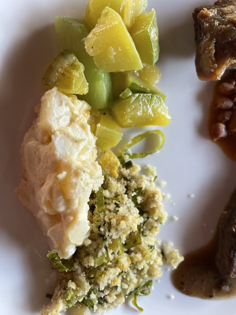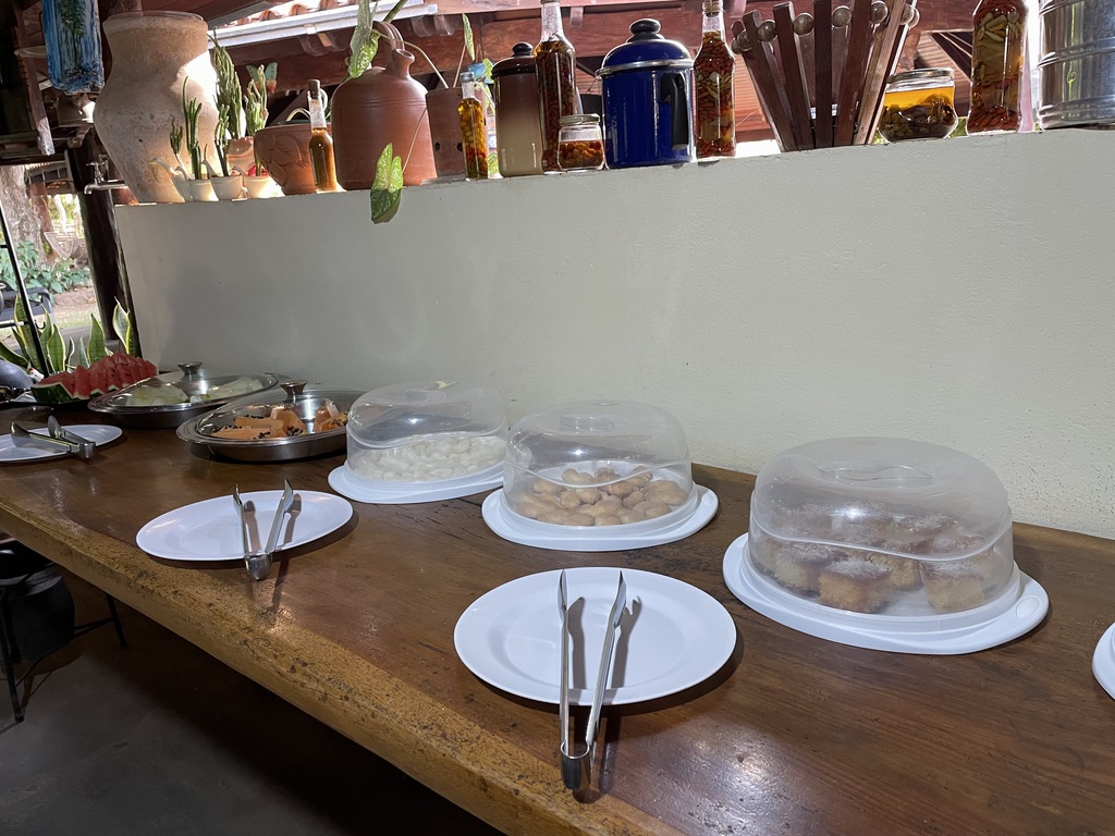 La cuisine est locale, à base de produits de la ferme, cuite au feu de bois. Le buffet permet de d’avoir le choix et de goûter plusieurs plats. Les desserts sont peu variés mais personne ne s’en plaindra : le délicieux sorbet coco et la crème Maracuja font l’unanimité !