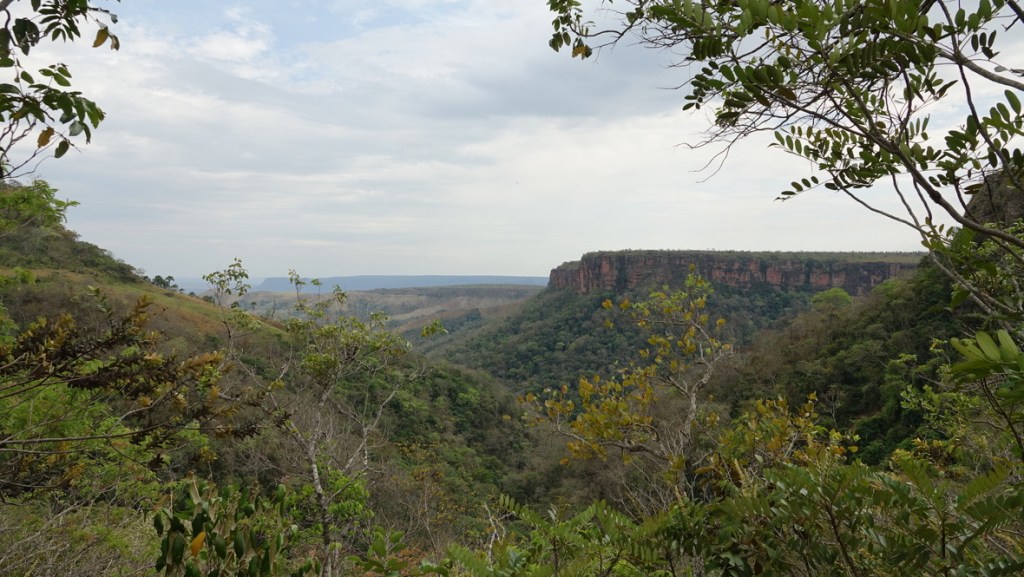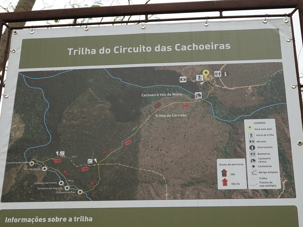 La randonnée commence après la chute d’eau Véu de Noiva. Formée par le ruisseau Piedade, un affluent de la rivière Coxipó, elle chute de 86 mètres dans un immense canyon couvert d’une forêt luxuriante. La chute est visible depuis un point de vue bien aménagée.