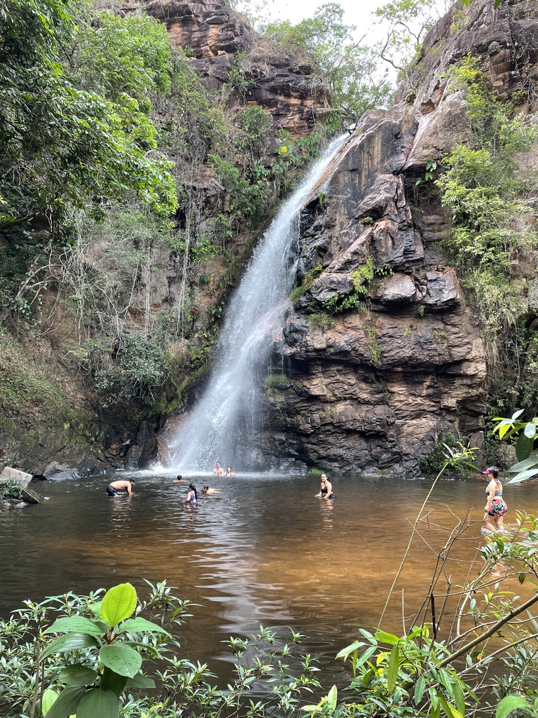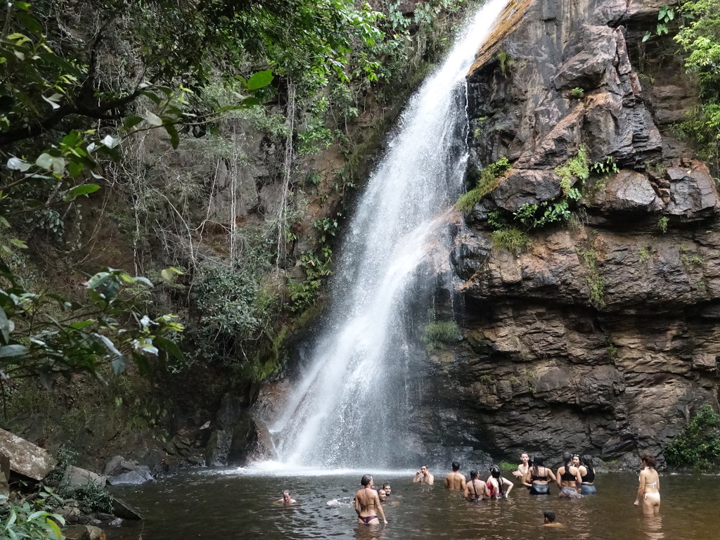 La Cachoeira das Andorinhas (hirondelles) est la plus haute et son grand bassin peut accueillir 50 personnes. Nous nous baignons avec grand plaisir au milieu d’une petite foule joyeuse et bruyante. On s’amuse sous le rideau d’eau !