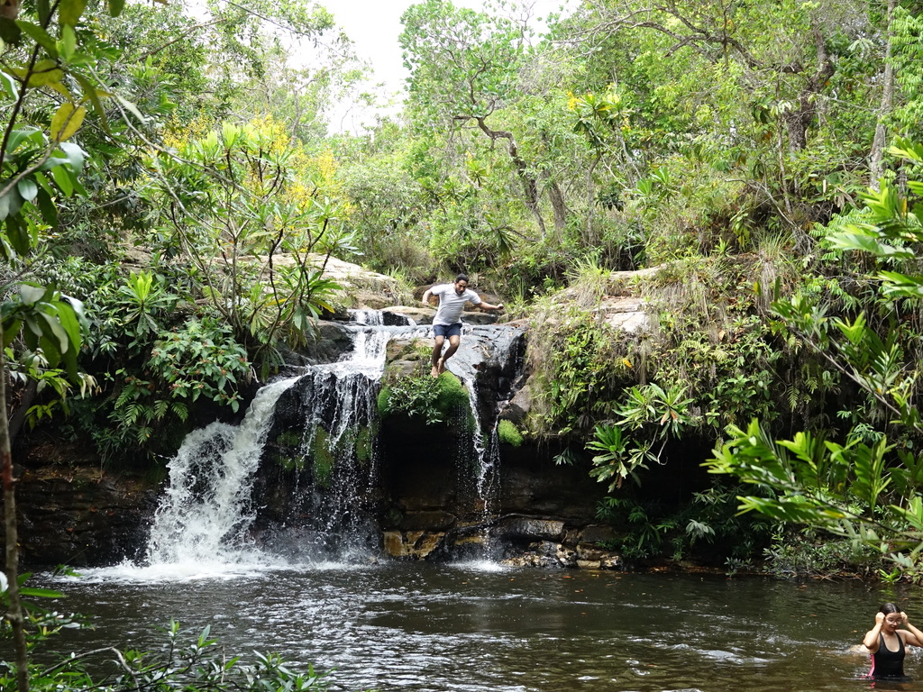 Le chemin nous mène ensuite à flanc de colline. On ne descendra plus que quelques marches pour accéder aux cascades. Piscinas naturais est une petite vasque juste au dessus d’Andorinhas. Prainha a un joli bassin et une petite plage. Le nom de cachoeira dos Degraus vient de sa forme en escalier.