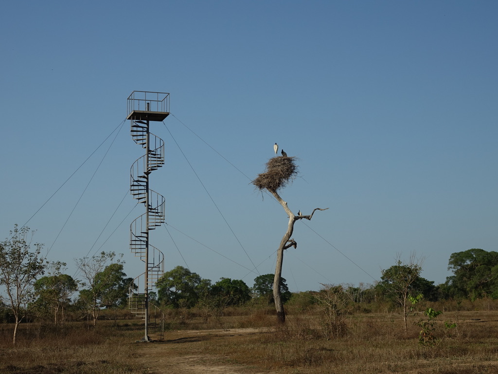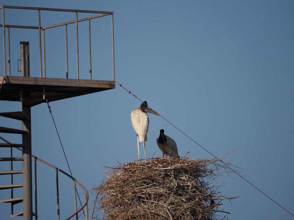 Les naturalistes ont habitué ces cigognes pendant des années, de sorte que les oiseaux ignorent les visiteurs et se comportent naturellement. C’est là une occasion unique d’observer leur comportement de nidification. Il y a de la place pour 2/3 personnes tout là-haut et la tour bouge, mais la vue et les jabirus valent de surmonter ses craintes.