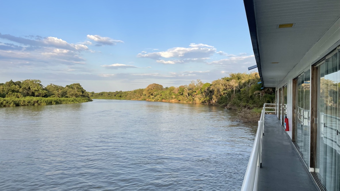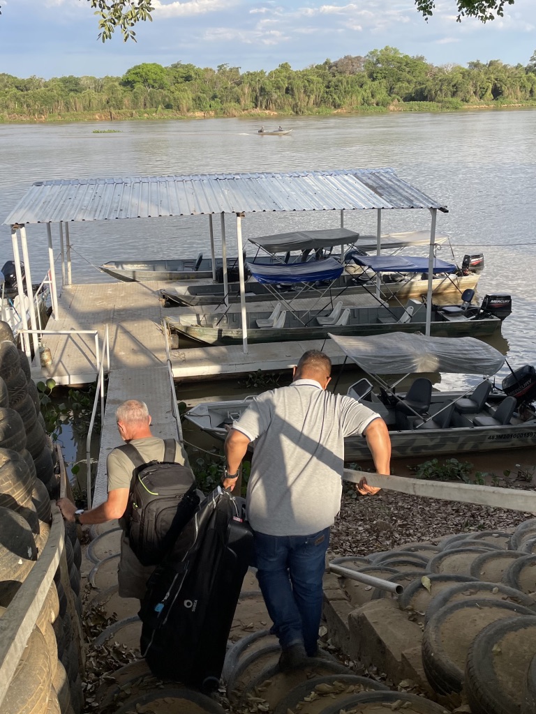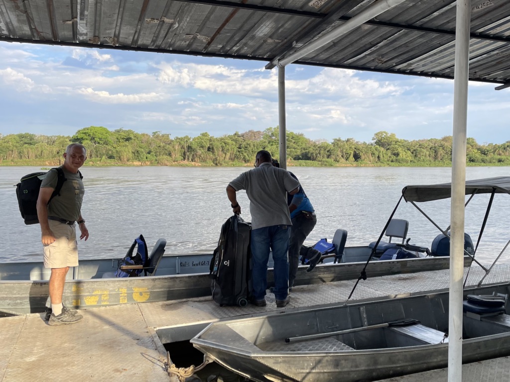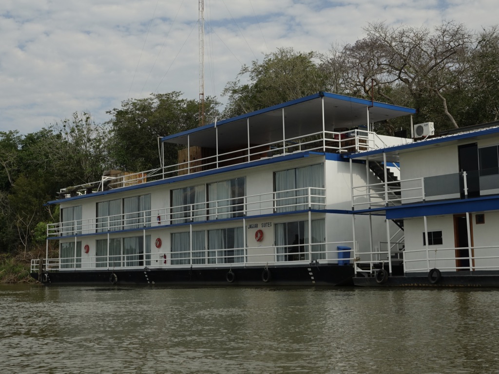 Nous faisons connaissance avec Mauro, qui sera notre pilote et guide pour les 5 prochains jours au pays des jaguars. Nous embarquons pour rejoindre le house-boat Jaguar Suites, à 30 minutes de navigation. Le bateau appartient à la société Transpantanal et est utilisé comme base par la compagnie d’écotourisme et de conservation Southwild.