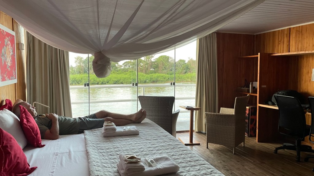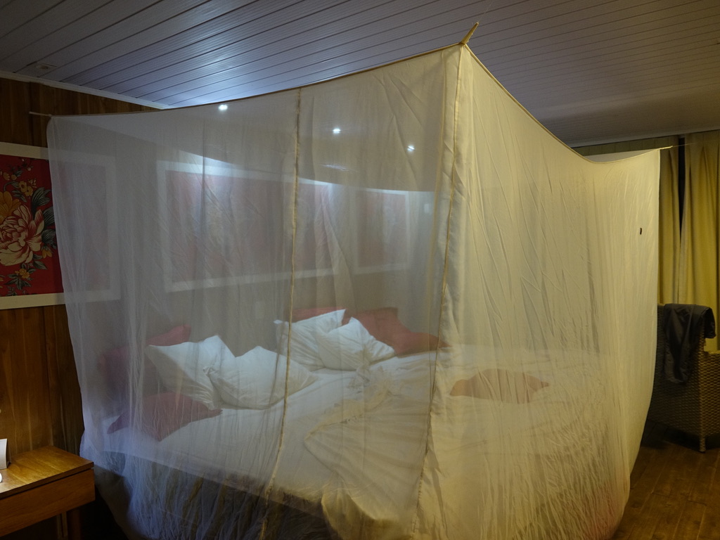 J’ai découvert sur le site de Southwild que c’est Charles Munn (le créateur de l’entreprise) qui a conçu les moustiquaires, en tirant les leçons de ses années de travail en zone tropicale. Les moustiquaires n’ont pas d’ouvertures qui se chevauchent sur le côté, elles sont très fines et très longues, ce qui leur permet de reposer sur le sol autour des lits. Nous avons apprécié, tant il y a de bestioles la nuit. Certaines ne vivent d’ailleurs que le temps d’une nuit et meurent avec le lever du jour.