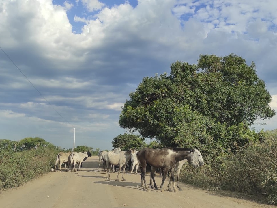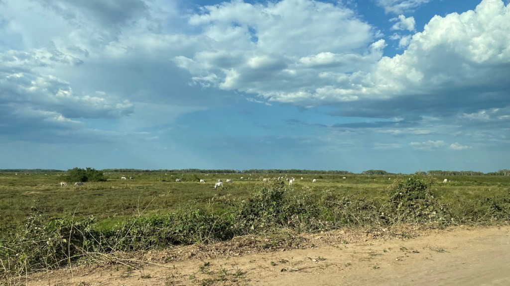 Après 2h de piste, quelques ponts et seulement 3 virages (!), des rencontres avec des animaux dosmestiques, nous arrivons au bout de la Transpantaneira.