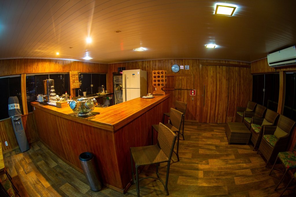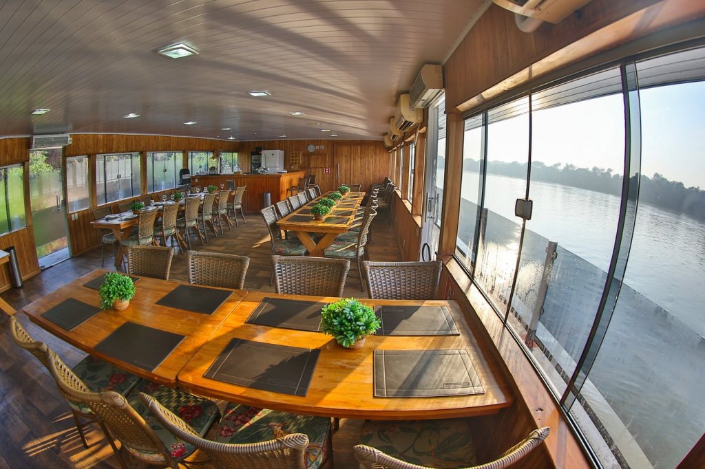 La grande salle à manger climatisée offre une vue panoramique sur la rivière Piquiri. Les buffets sont très bons et les horaires de service permettent à chacun d’organiser ses sorties à sa guise.