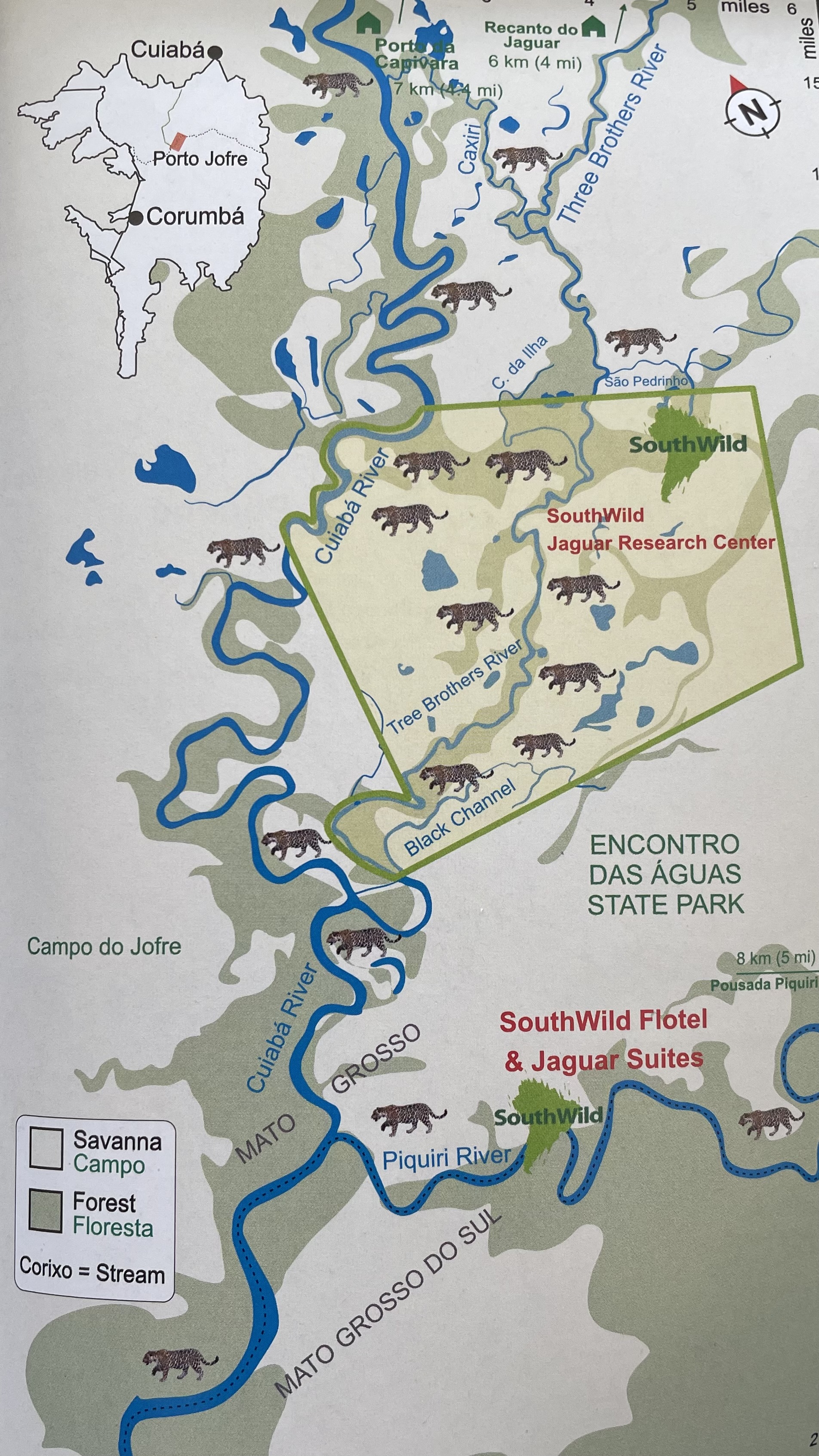 Le parc naturel Encontro das Águas est surnommé Jaguarland, pour la forte concentration en grands félins. L’épicentre est la zone encadrée, Jaguar Research Center.