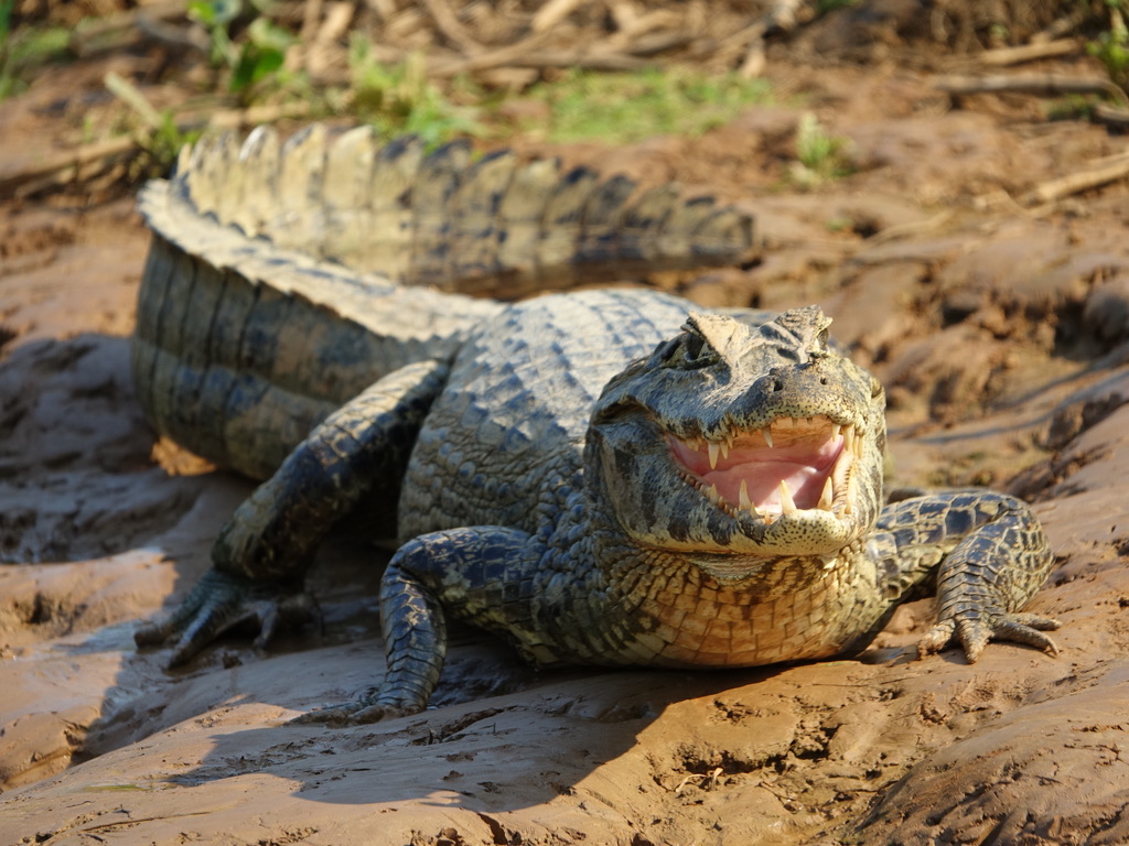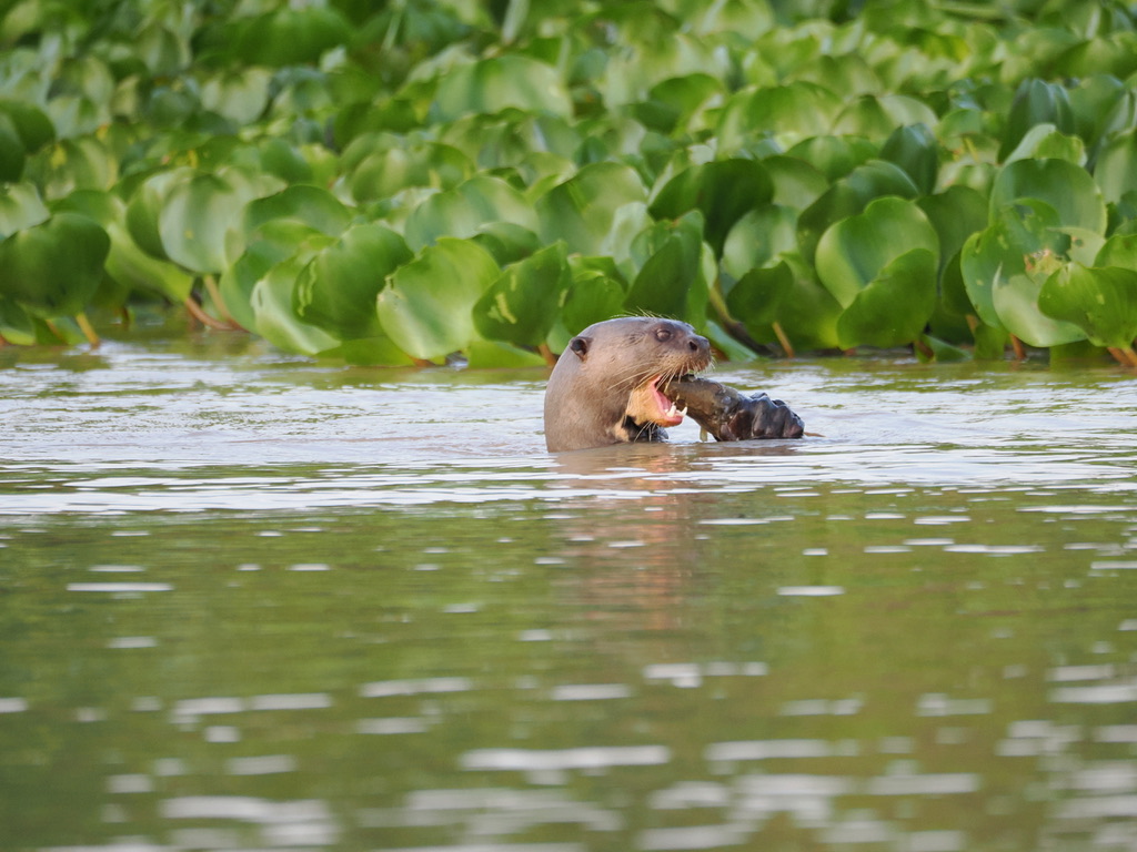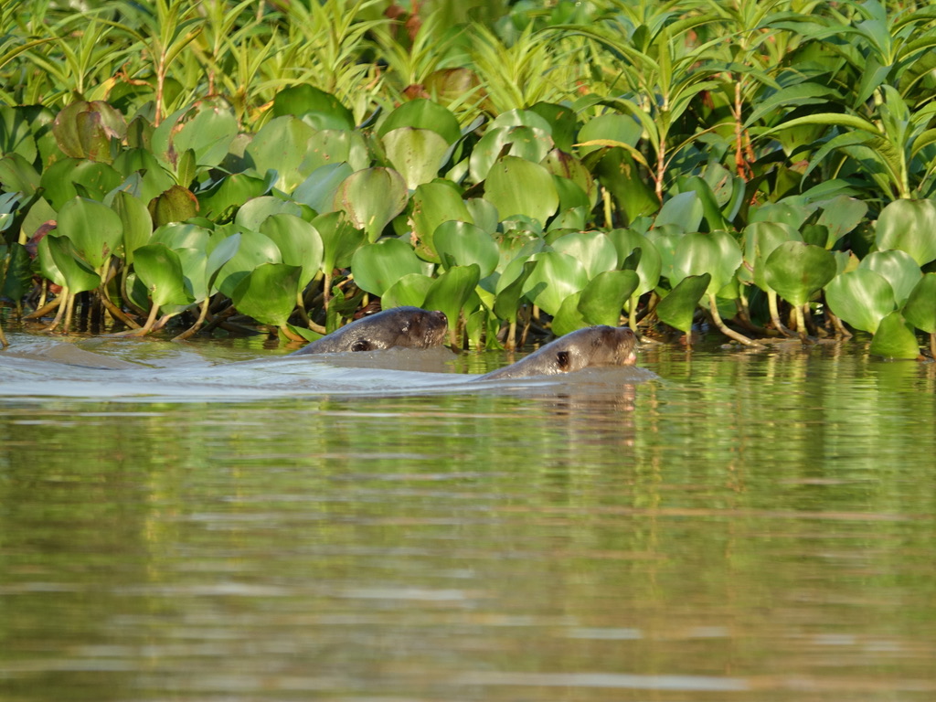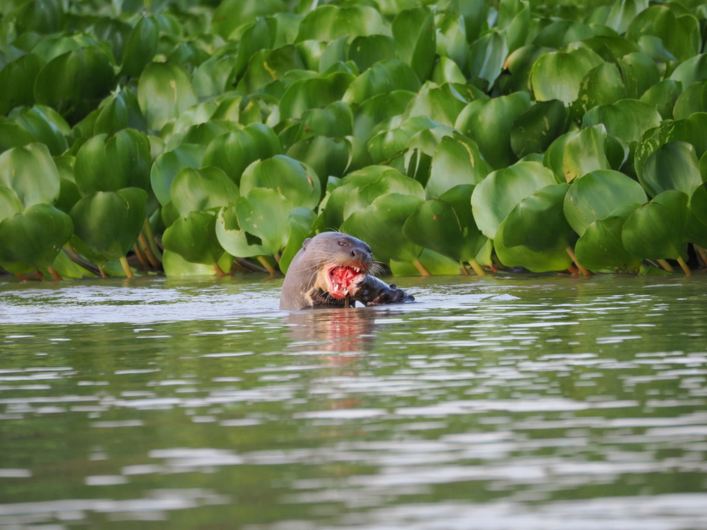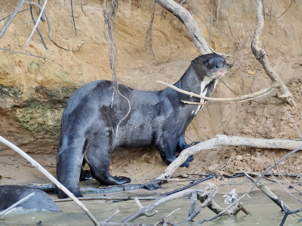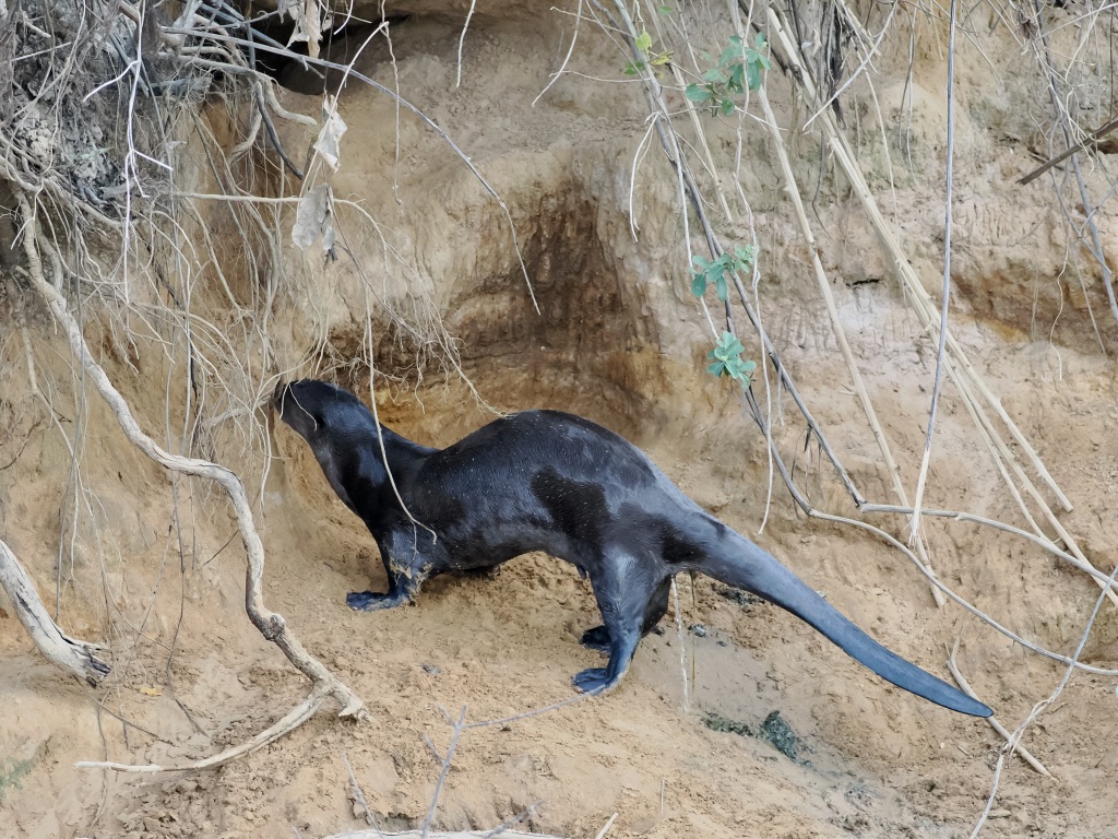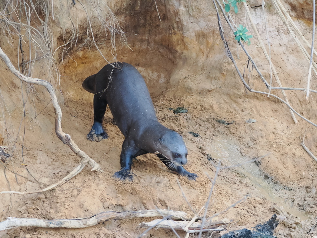 La première rencontre est avec une famille de loutres géantes en train de pêcher sur la rivière des 3 frères. Les loutres vivent en groupes familliaux de 4 à 8 individus, elles chassent en meute et se nourrissent d’anguilles ou de poisson-chats.