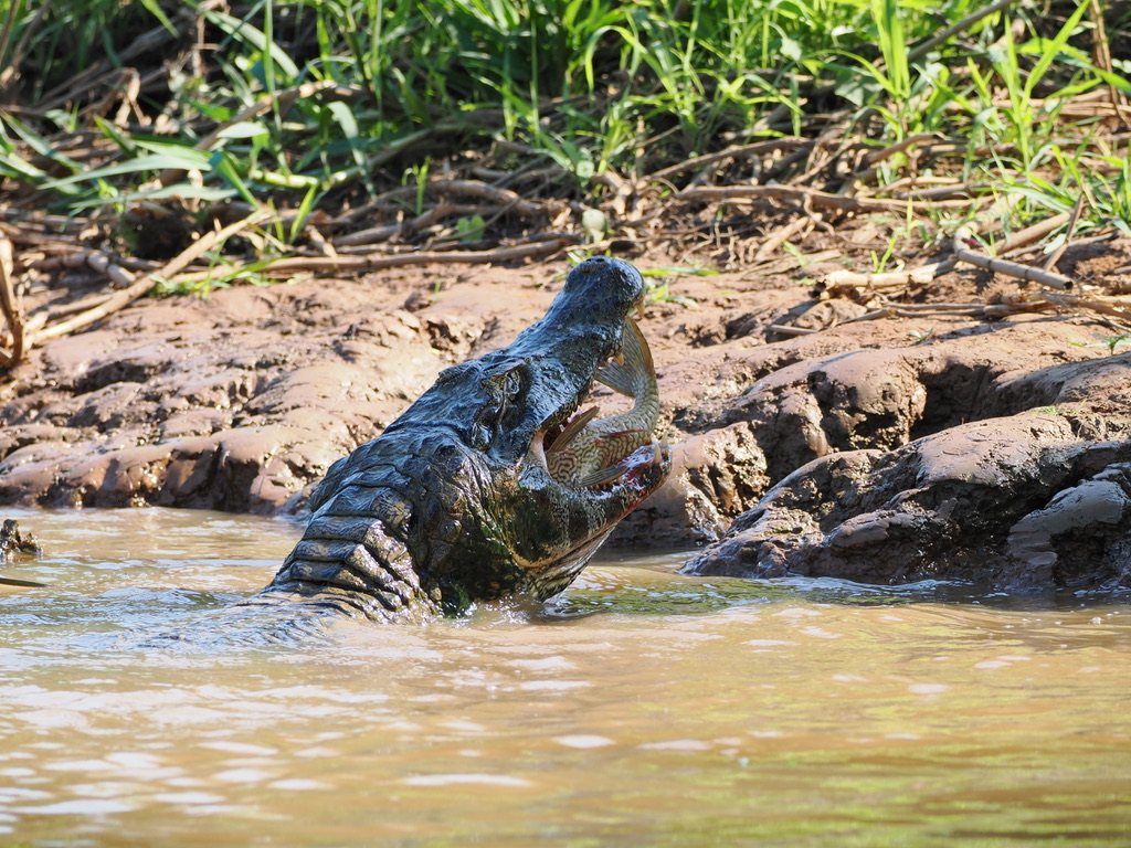 Nous entrons pour la première fois dans le black channel ou corixo negro et retrouvons Patricia (Jaguar 2) qui lézarde au soleil. Nous sommes seuls avec un autre bateau…pendant 4 minutes ! Très vite, 10 bateaux nous entourent, la femelle va se cacher.