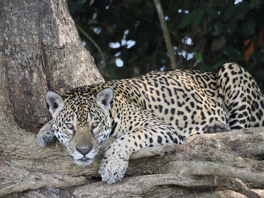 Au bout du canal, le jaguar 3 se repose tranquillement sous un arbre. C’est Medrosa, la fille de Patricia née en 2016, dont les territoires sont tout proches. Elle est surnommée Amber, comme la couleur de ses yeux.