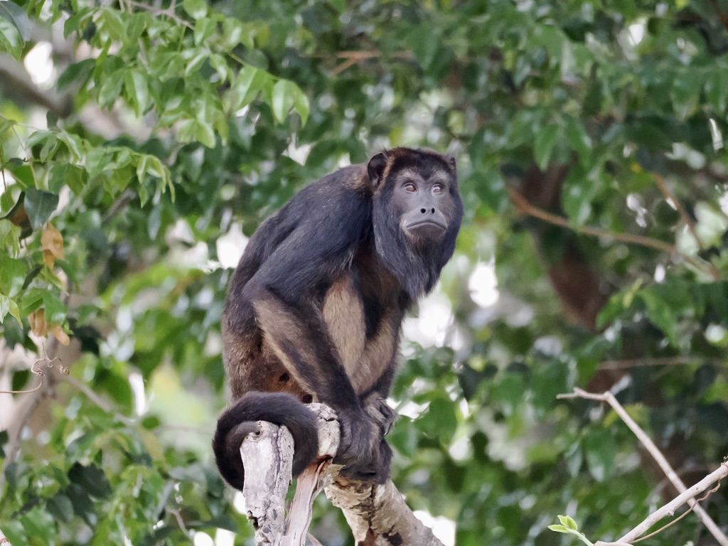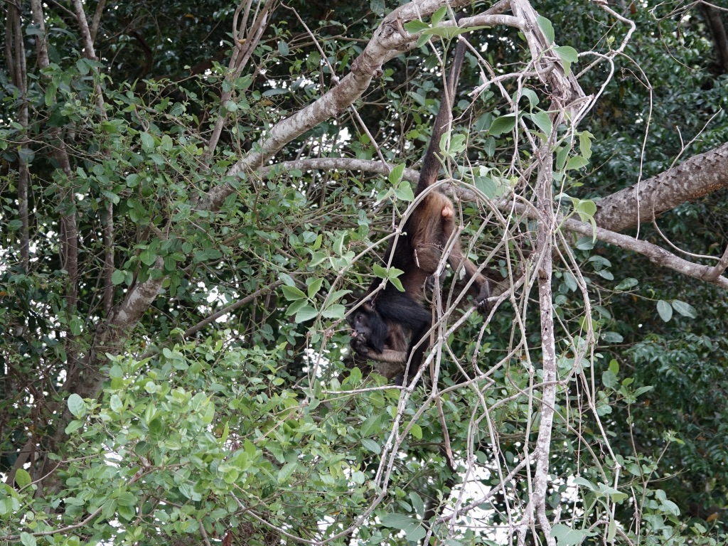 Nous sommes de retour à 6h45 pour prendre le petit-déjeuner. Notre voisin le singe hurleur grignote lui aussi.