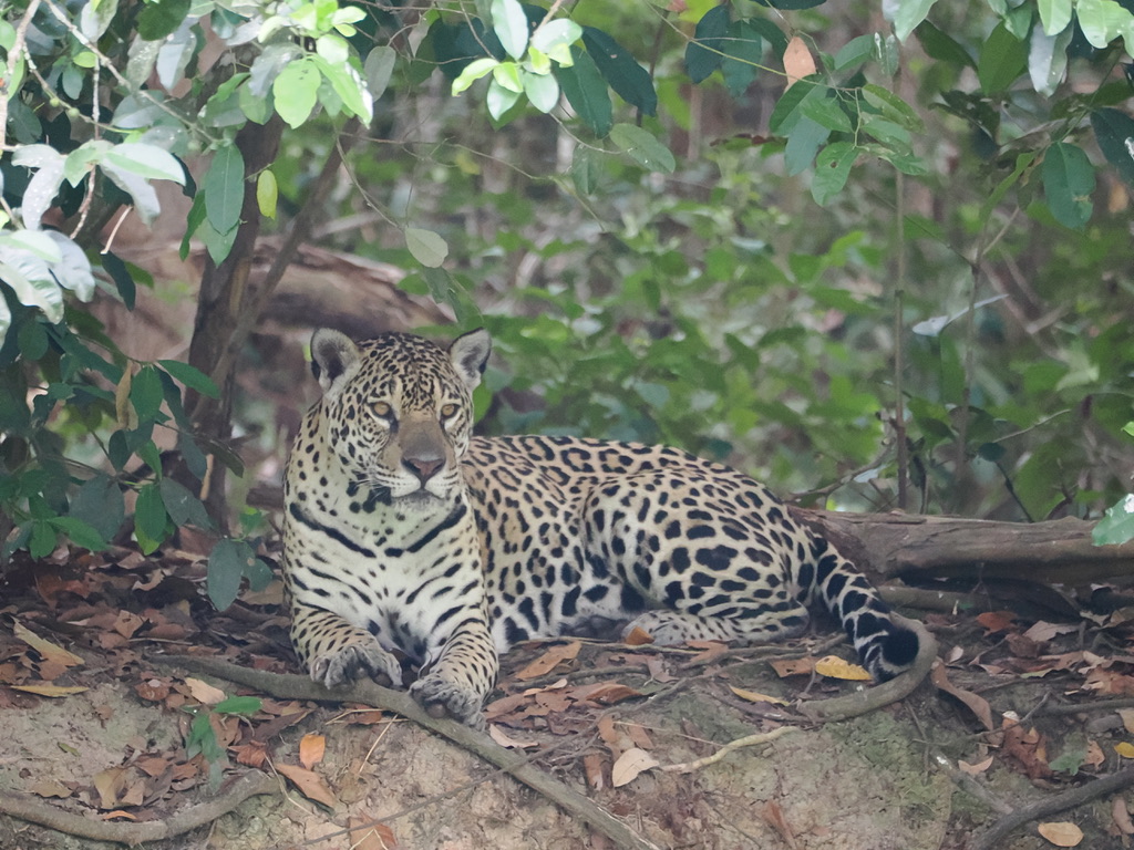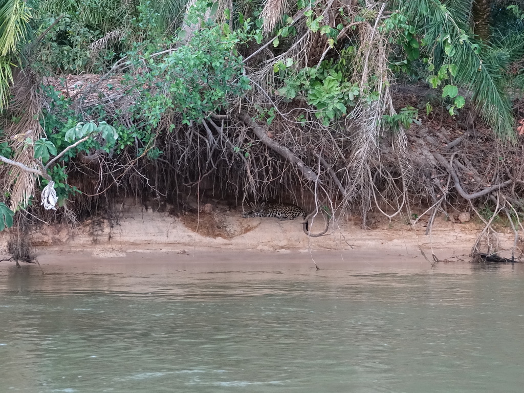 Nous voyons que les bateaux respectent la règle des 25 mètres de distance avec l’animal. Il faut garder à l’esprit qu’un jaguar peut faire un saut de 10 mètres. Il s’agit donc de respecter le jaguar et aussi de rester en sécurité.