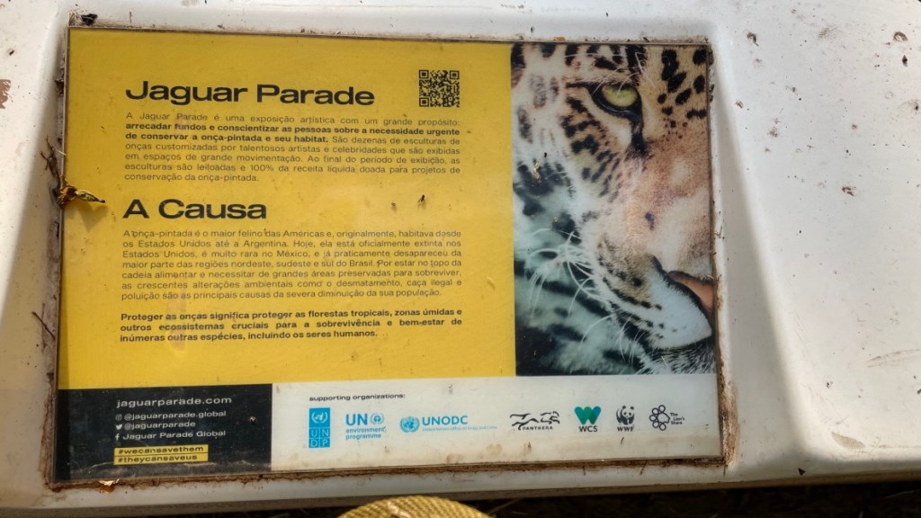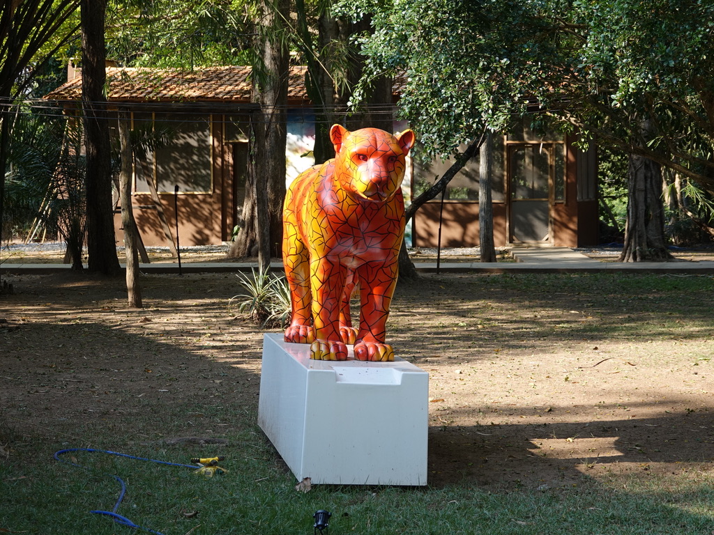 Les bungalows sont répartis dans un vaste parc arboré, fleuri et agrémenté d’une oeuvre d’art en soutien aux programmes de conservation du jaguar.