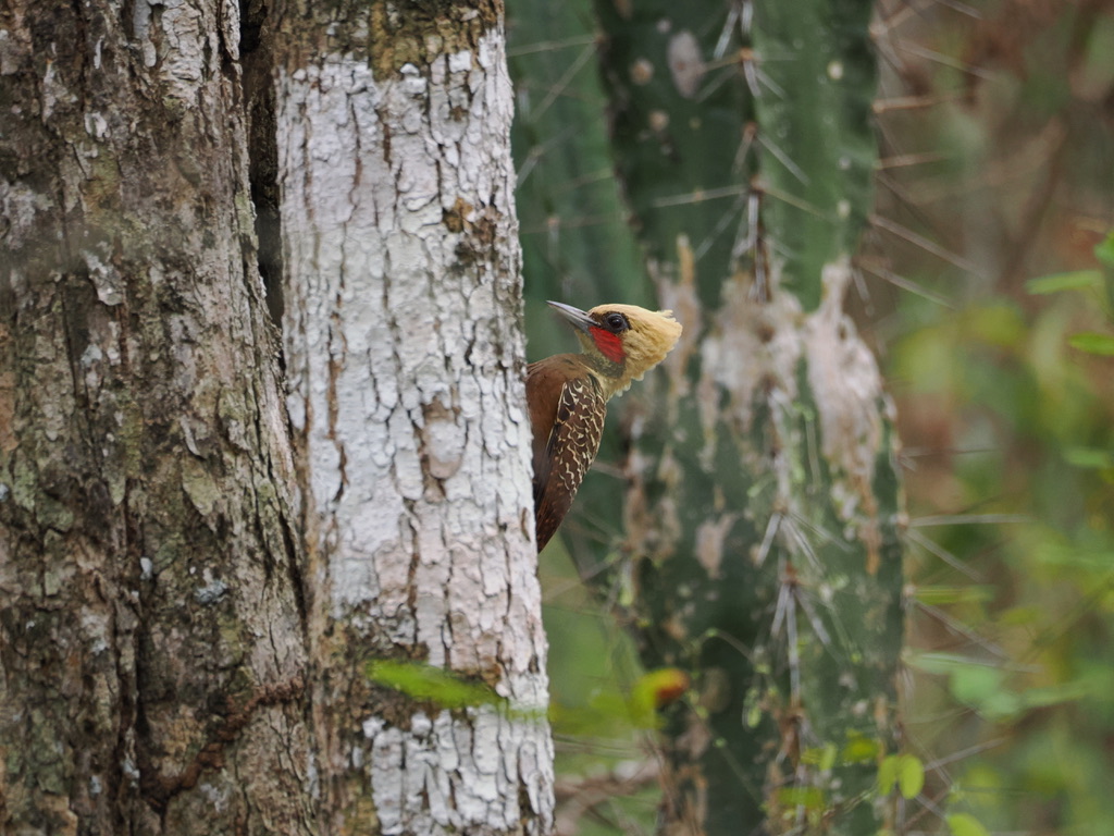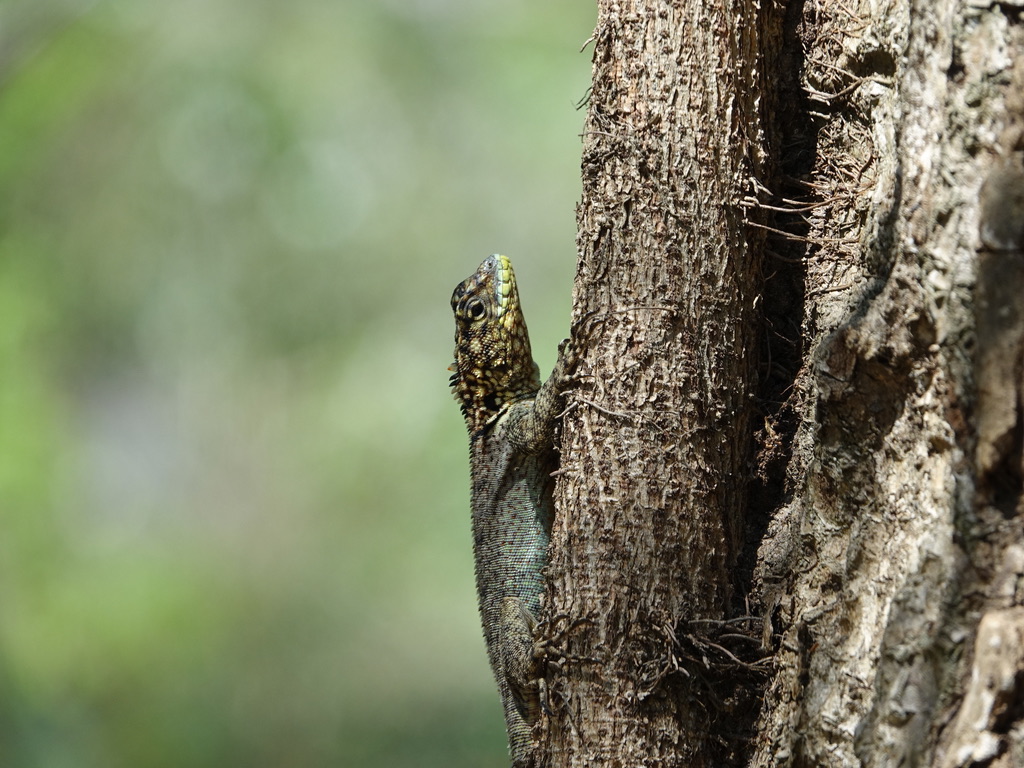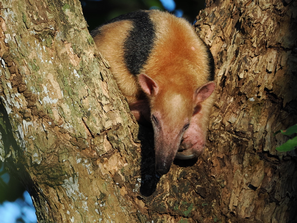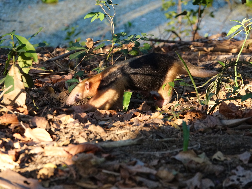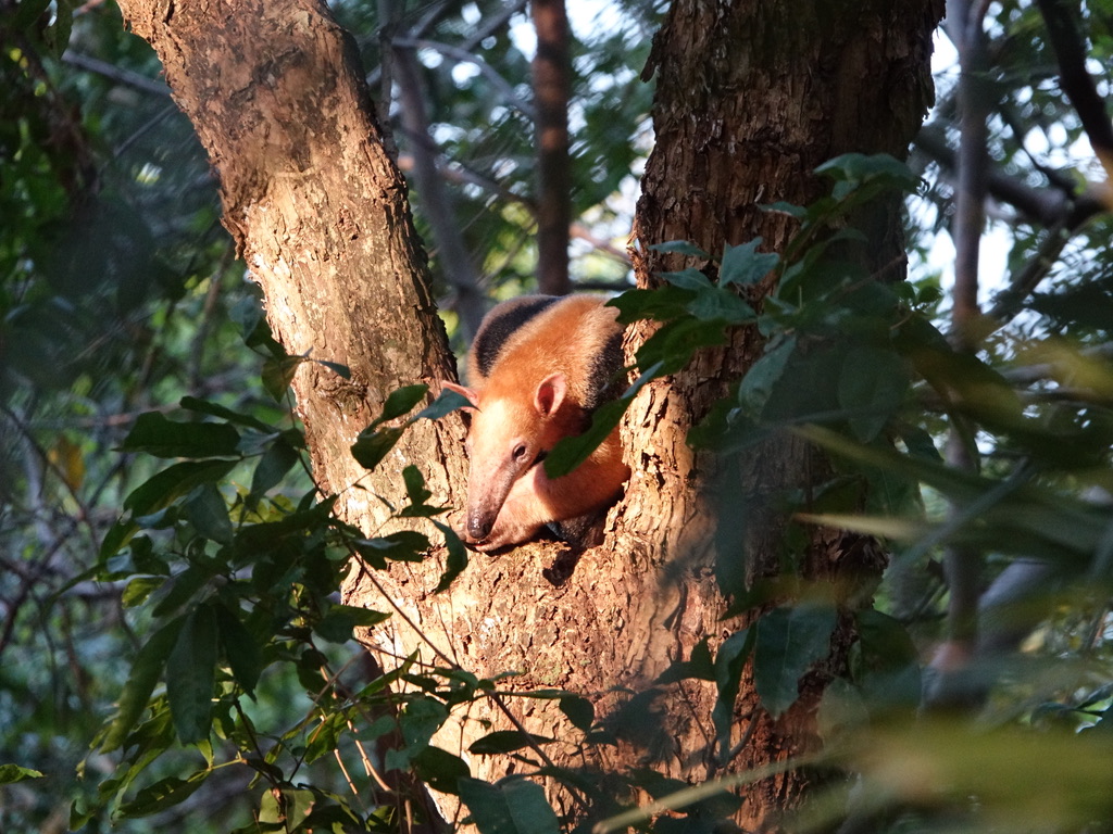 Nous avons eu un coup de chance lors de notre arrivée. Un fourmillier à collier (Tamandua tetradactyla) grimpait dans un arbre, à 2 pas de la réception. J’ai compris que la chose est plutôt rare quand la réceptionniste est sortie avec son appareil photo