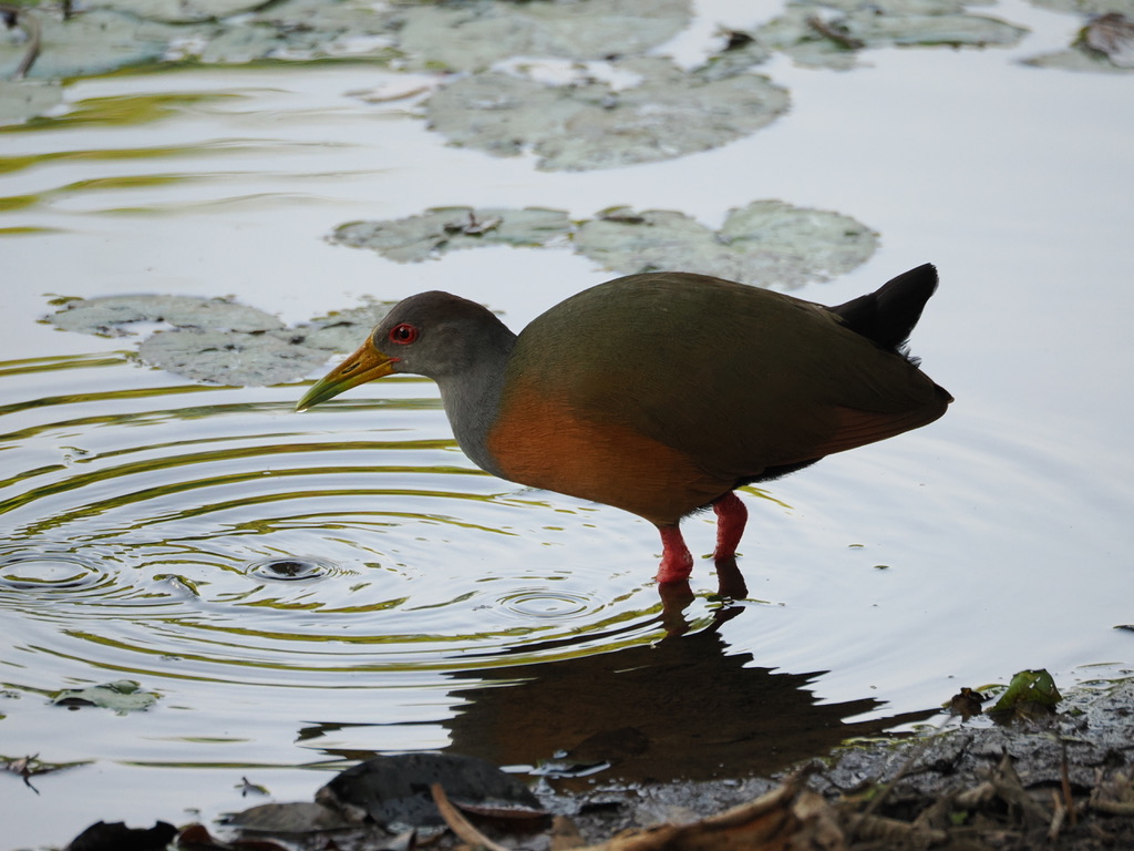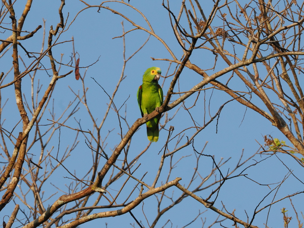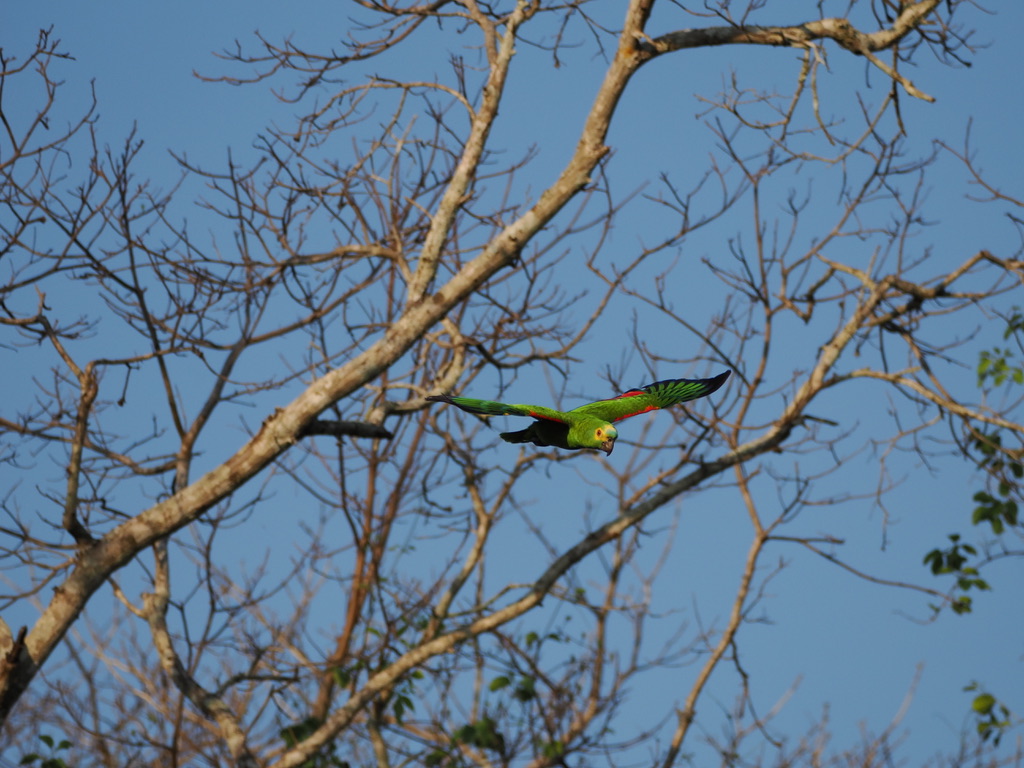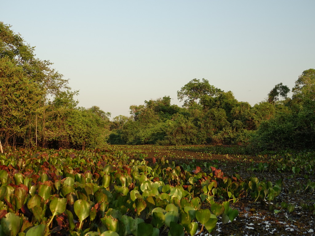 - La promenade en canoë se fait sur une rivière étroite, entourée par la forêt. Les jacinthes d’eau en grand nombre nous ont rendus la rame un peu ardue. Pas si facile de trouver des oiseaux en pagayant. Nous avons tout de même agrandi notre collection de perroquets !