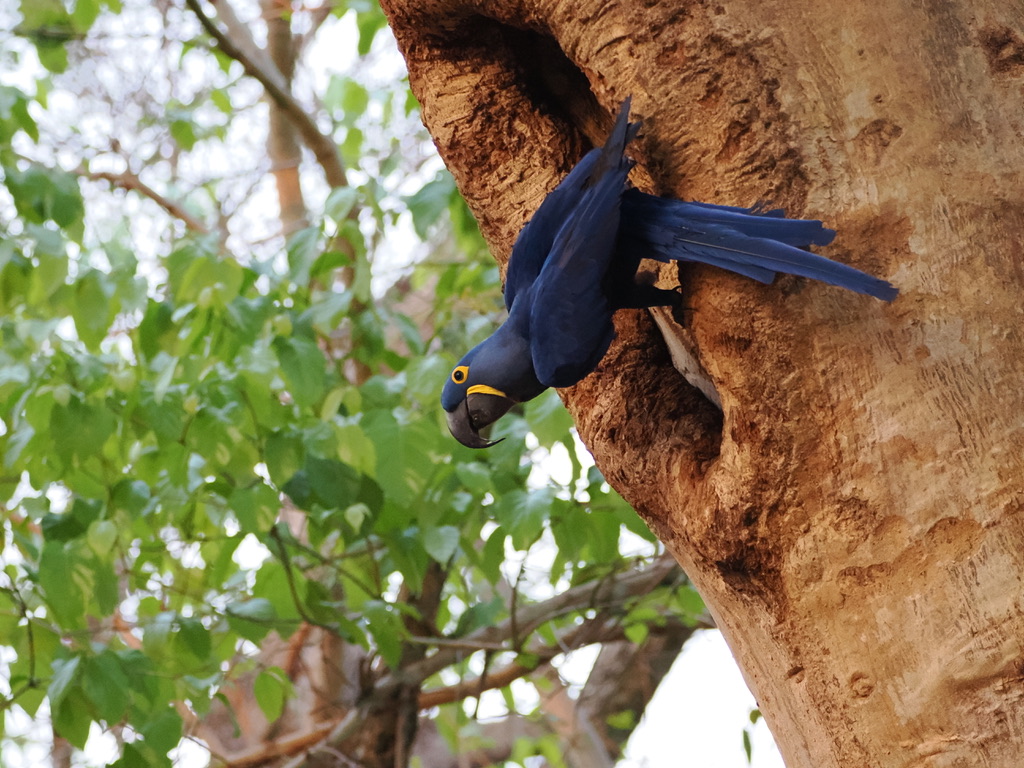 Comme de nombreux lodges au Pantanal, Aymara veille sur un couple de aras hyacinthe, en préservant sa tranquillité et en protégeant l’arbre Manduvi où il niche. Les oiseaux ne sont pas farouches quand ils sont dans le jardin. C’est très différent dans la forêt où nous les avons croisés… ils ont filé à toute vitesse.