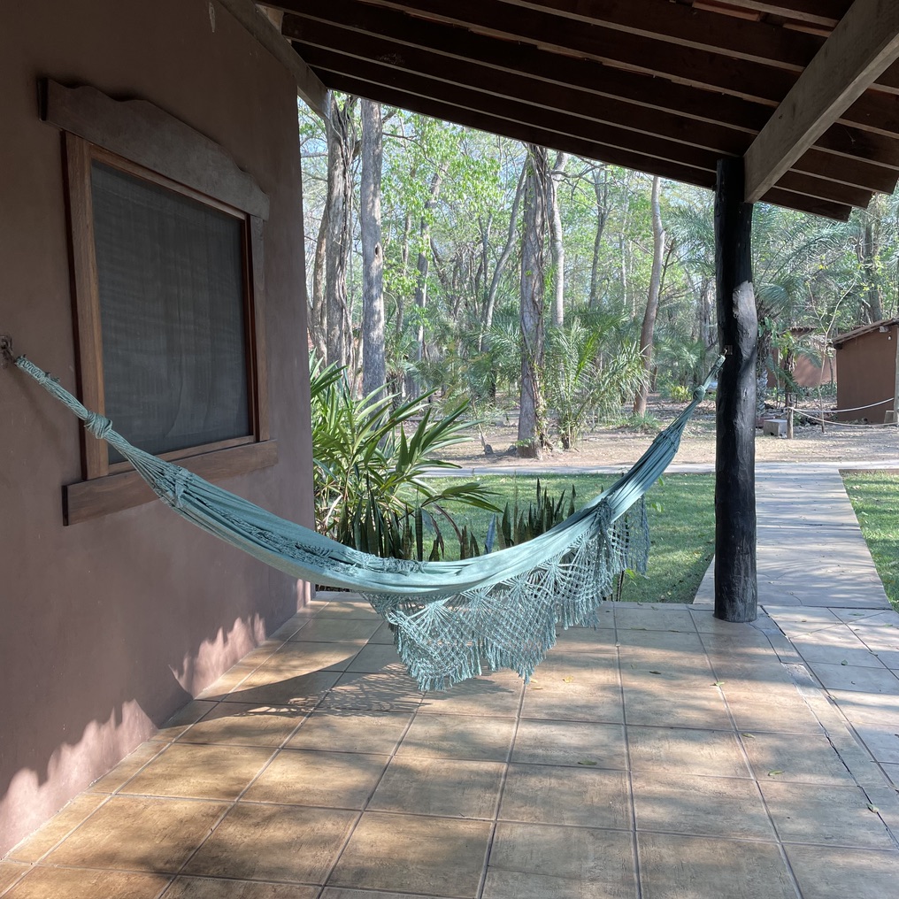 Toutes les chambres ont une belle vue sur les jardins depuis le balcon ombragé et équipé de l’incontournable hamac.