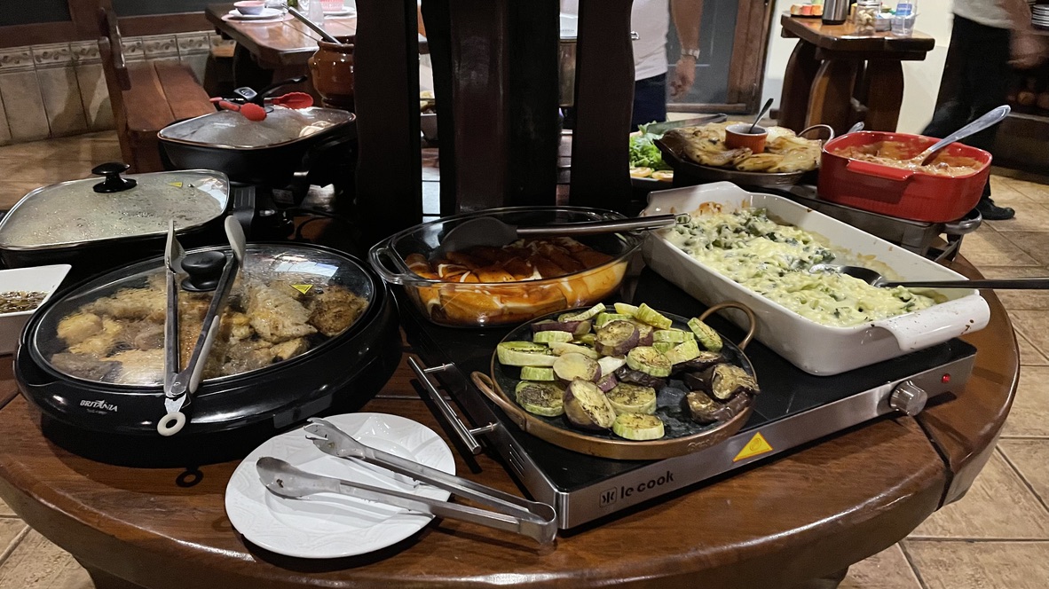 Nous séjournons 3 nuits en pension complète incluant le petit-déjeuner, le déjeuner, le café de l’après-midi et le dîner. La jeune chef propose une cuisine régionale typique à base des produits locaux et de saison. Le petit buffet propose une grande variété de plats équilibrés. La salle à manger est ouverte sur le jardin.