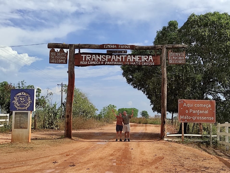 La route MT-060, nommée Transpantaneira, relie la ville de Poconé aux fermes du Pantanal et se termine à Porto Jofre, à 145 km vers le sud. La piste en argile rouge est surélevée par rapport aux champs qui l’entourent, car la zone est inondée entre décembre et avril.