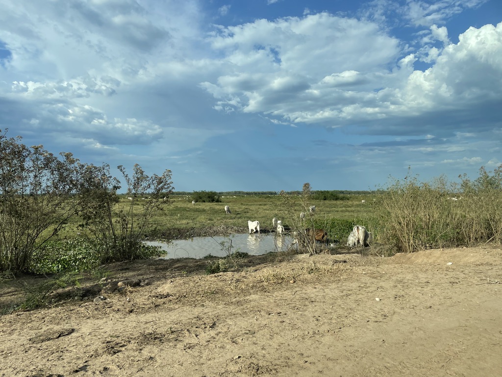 L’activité principale dans le Pantanal étant l’élevage bovin, ces animaux d’élevage cotoient les caimans en bordure de la piste !
