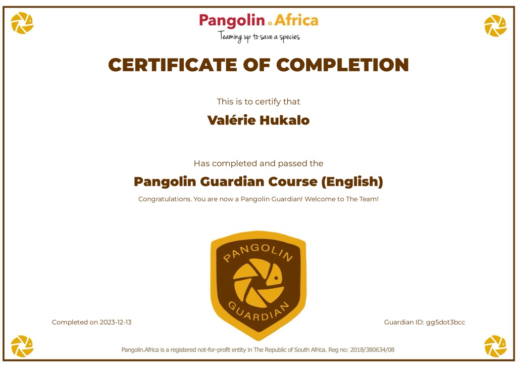 Rendez-vous sur cette page https://www.pangolin.africa/become-a-pangolin-guardian pour regarder les 2 vidéos. Complétez les quizz pour tester vos connaissances et recevoir votre certificat de Pangolin Guardians.