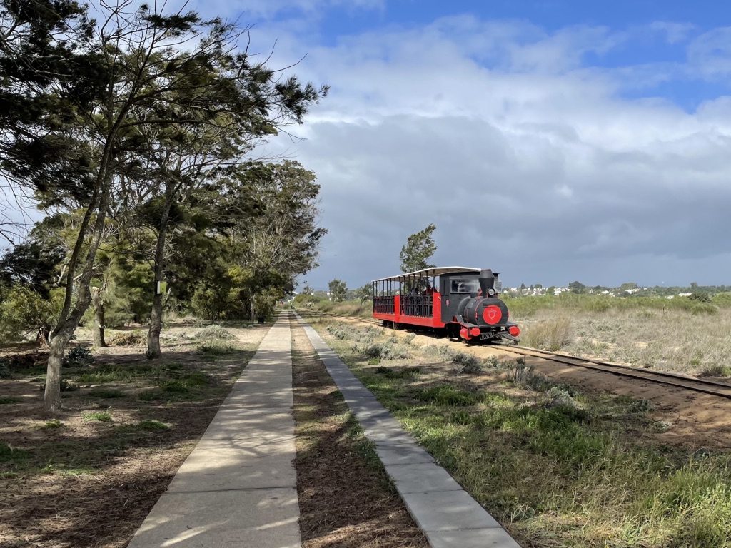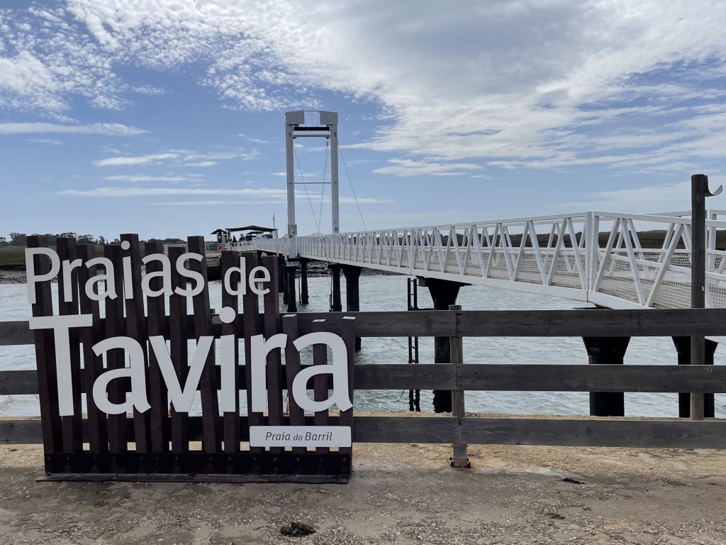 Après avoir traversé le canal de Tavira sur une jolie passerelle, on peut continuer à pied ou emprunter le petit train (par grosse chaleur, cela doit être tentant).