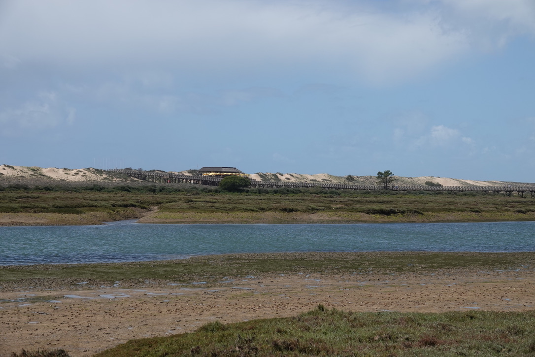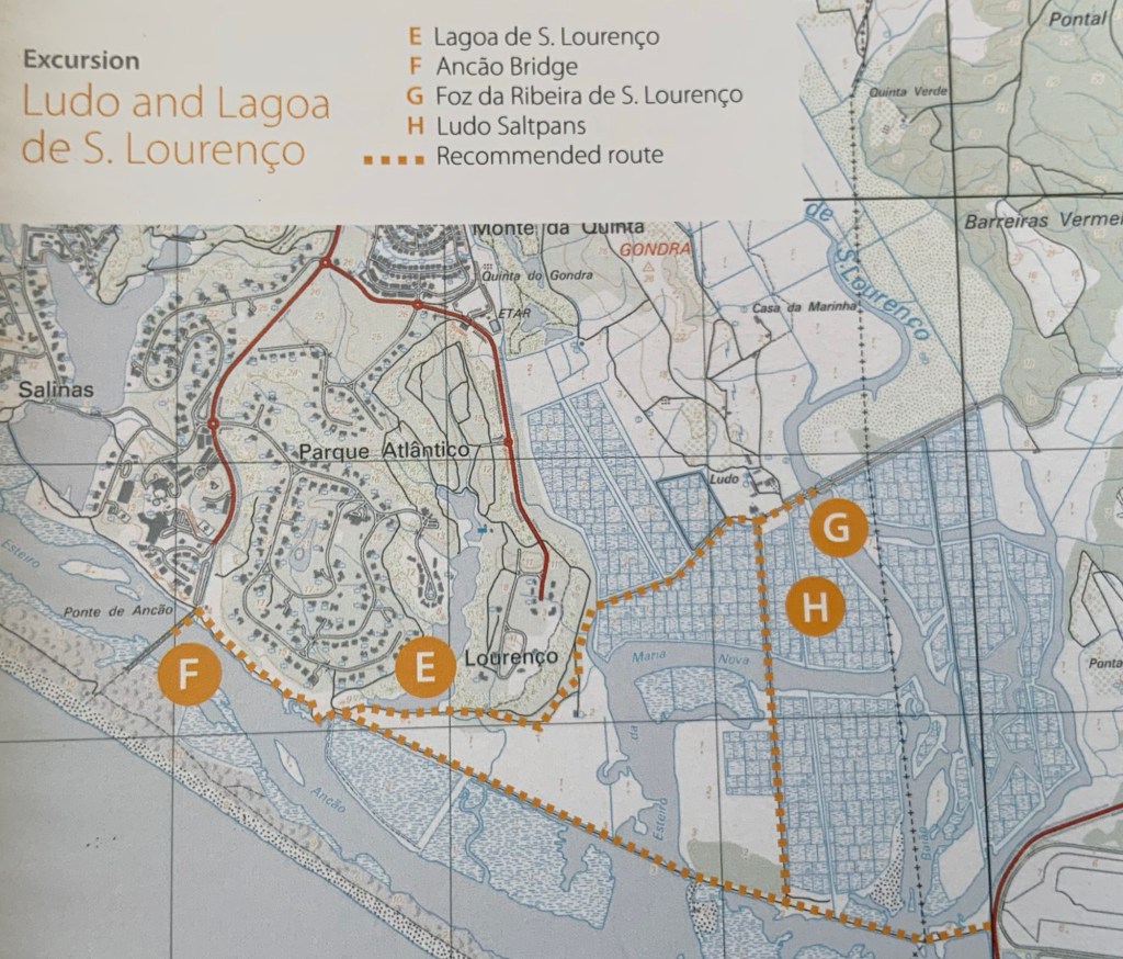 Pour la première, nous avons choisi de nous garer sur le parking de la Praia de Faro, en bout de piste de l’aéroport et de marcher jusqu’au golf de Quinta do Lago – H et E sur la carte.