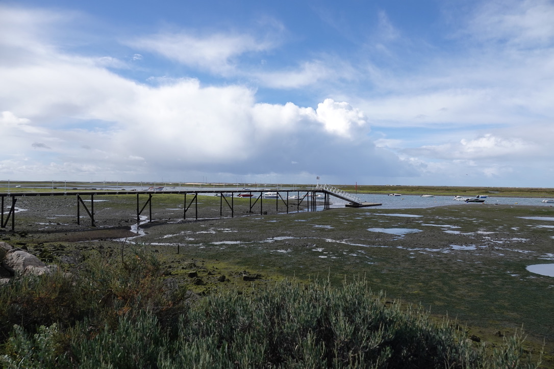 Sítio das 4 Águas se trouve de l’autre côté de la rivière Gilão. On emprunte le sentier qui passe entre les marais salants et les huitrières en activité.