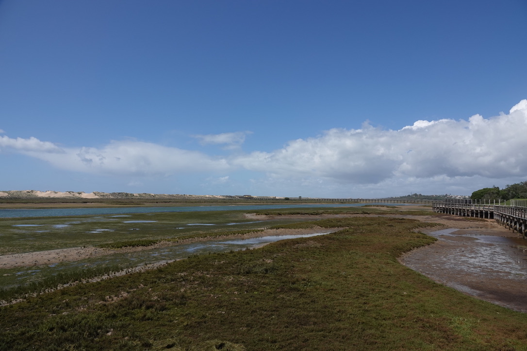 Pour la seconde sortie, nous sommes partis de Passadiço do Ancão pour rejoindre le golf de Quinta do Lago – F et E sur la carte. Le temps était plus lumineux mais venté et plutôt frais. Le Ponte da Quinta do Lago est emblématique au coeur de ce secteur résidentiel haut de gamme.