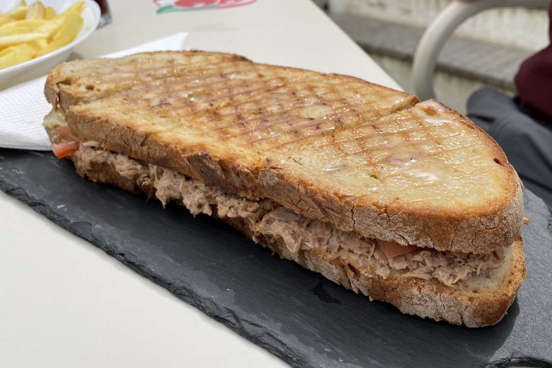 Nous avons mangé sur le pouce au Café Zé-Zéa, dans le village de Praia de Farol. Une tartine de thon sur du pain fait maison, avec des frites, 2 sodas et 2 cafés pour 15€, le tout servi avec le sourire.