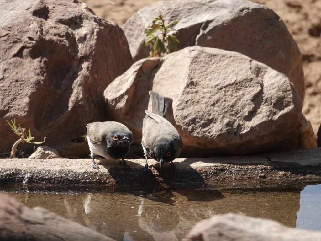 Le bain pour les oiseaux juste devant la chambre est une bonne idée, cela occupe entre 2 activités. Il y a même un récipient avec des graines pour les nourrir ! Nous y passons notre premier après-midi…