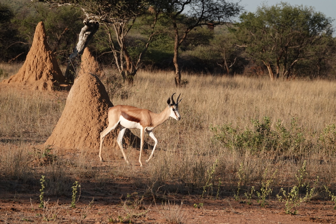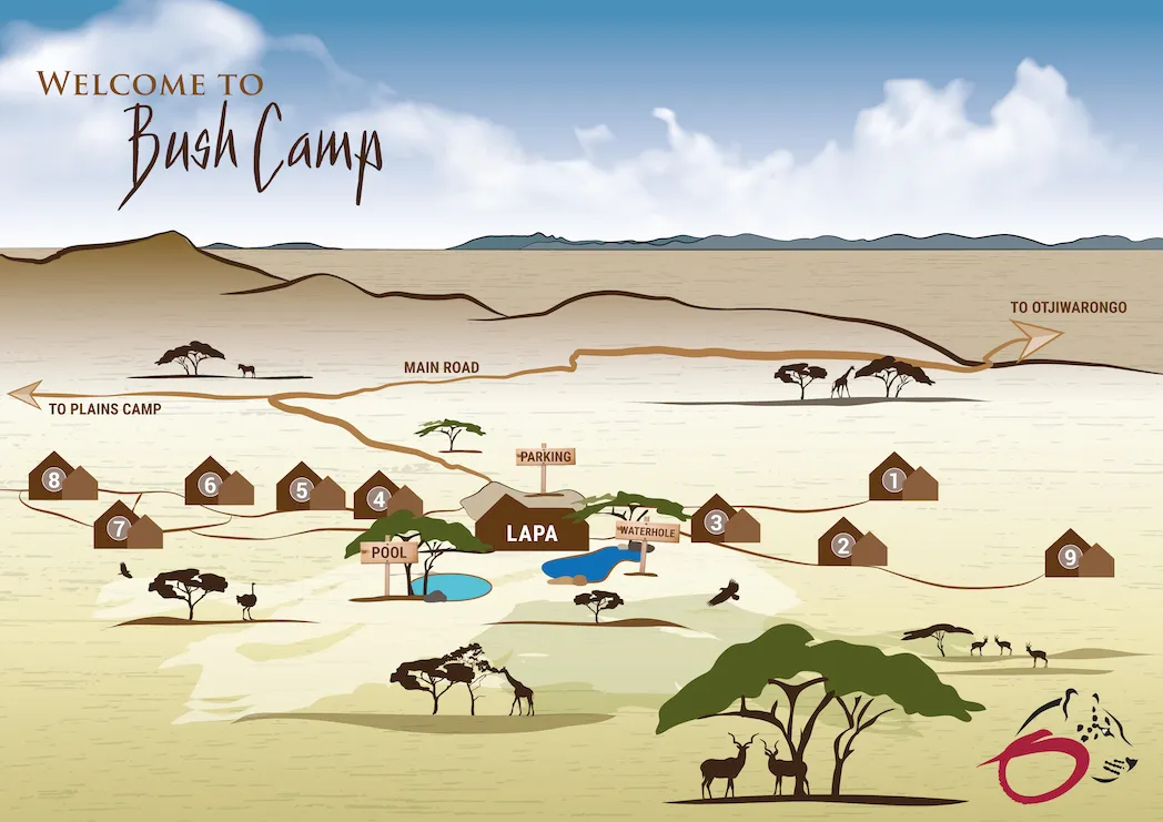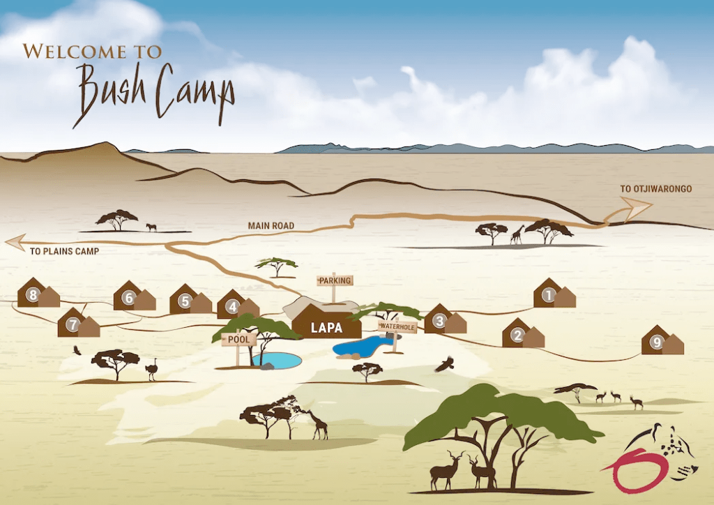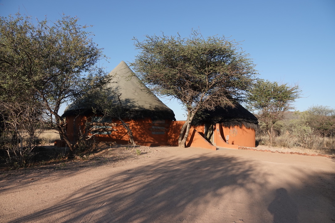 Le Bush Camp est situé dans la réserve naturelle d’Okonjima, à mi chemin entre Windhoek et le Parc National d’Etosha. Après 4 heures de route qui nous ont permis de prendre en main notre Toyota Fortuner, c’est une première étape de 2 nuits pour démarrer ce voyage en douceur.