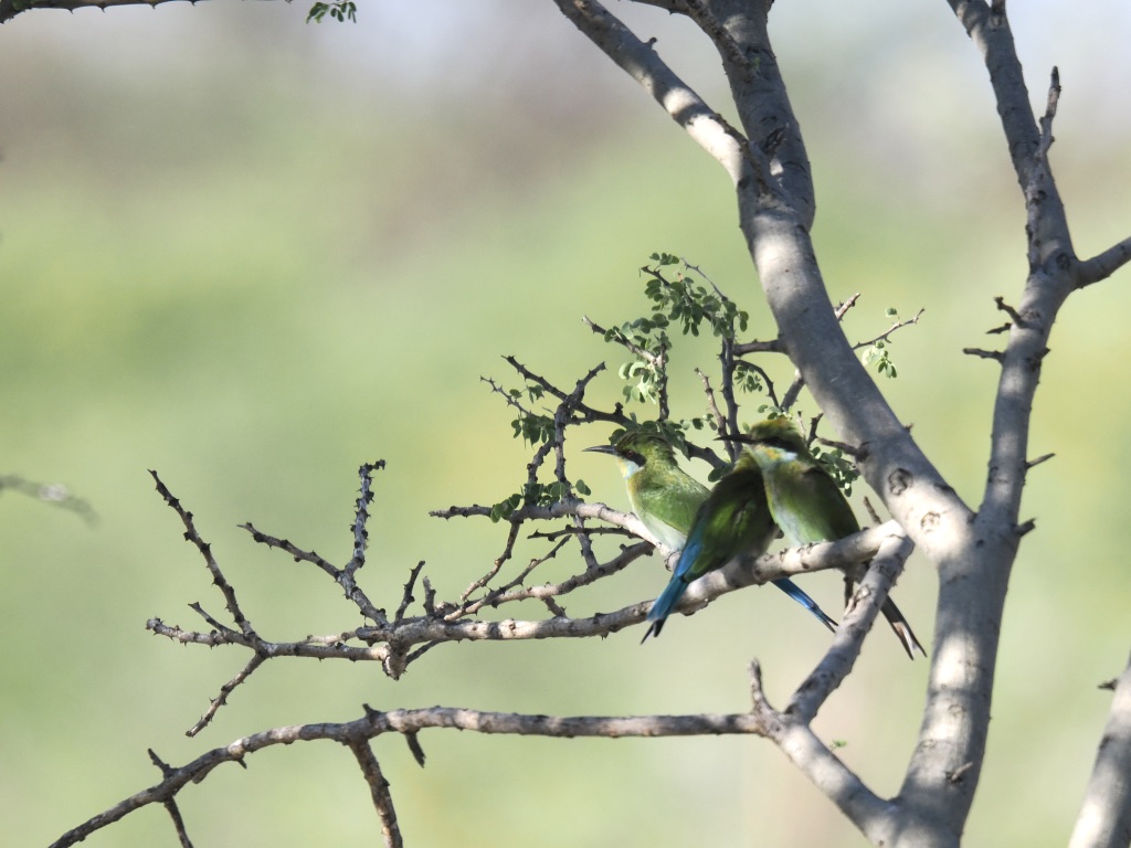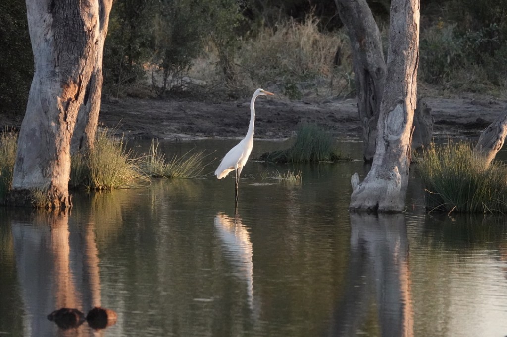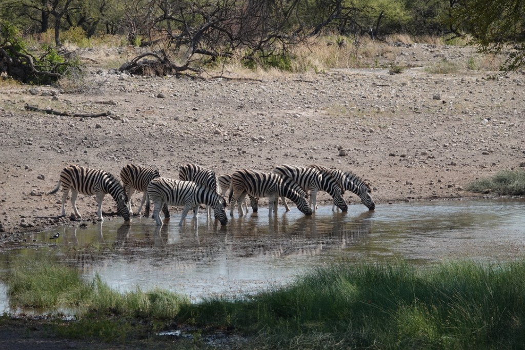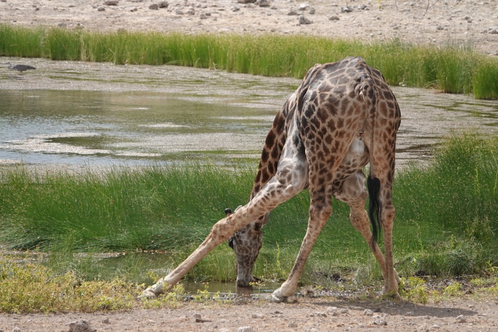 De nombreux animaux viennent au point d’eau tout au long de la journée : nous avons vu des koudous, de très nombreuses girafes, des zèbres, impalas et springboks et un gnou solitaire.