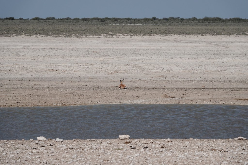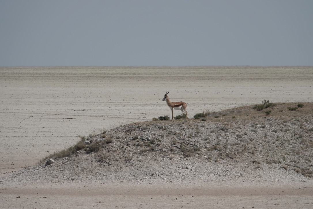 Le détour jusqu’à Etosha Lookout pour se rendre compte de l’aridité du pan a eu raison de nous, mais pas de ce courageux springbok.