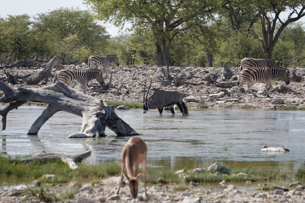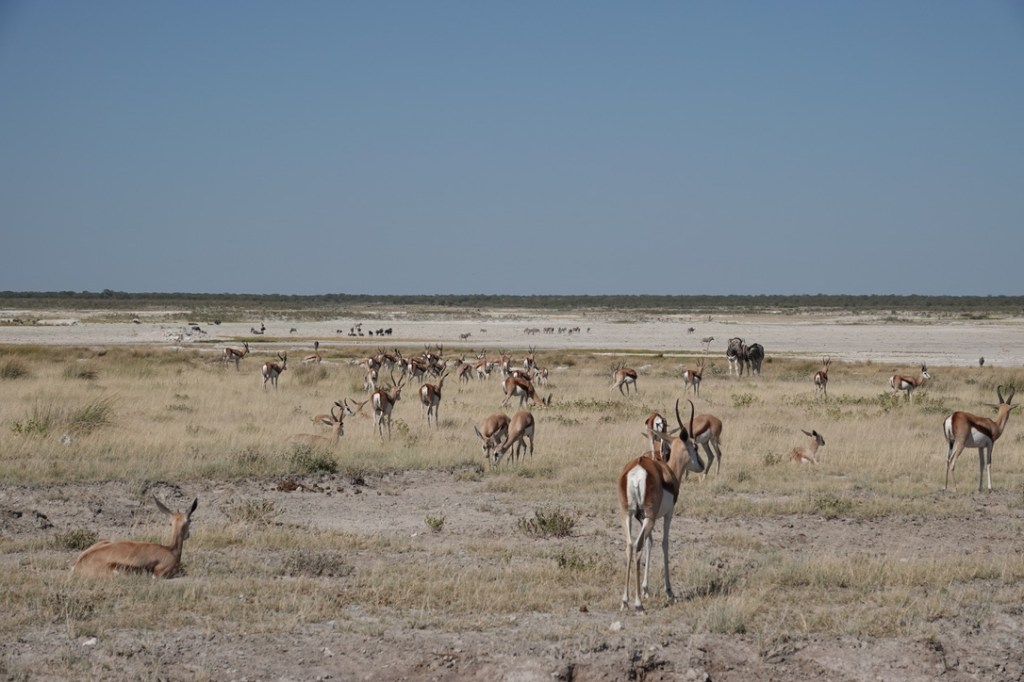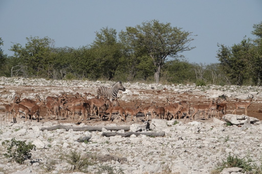 Le parc national d’Etosha est un « waterhole park ». On roule de point d’eau en point d’eau. Les animaux s’y regroupent, plus nombreux en pleine saison sèche.