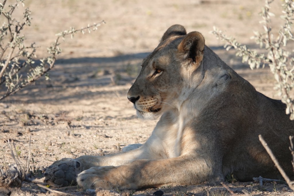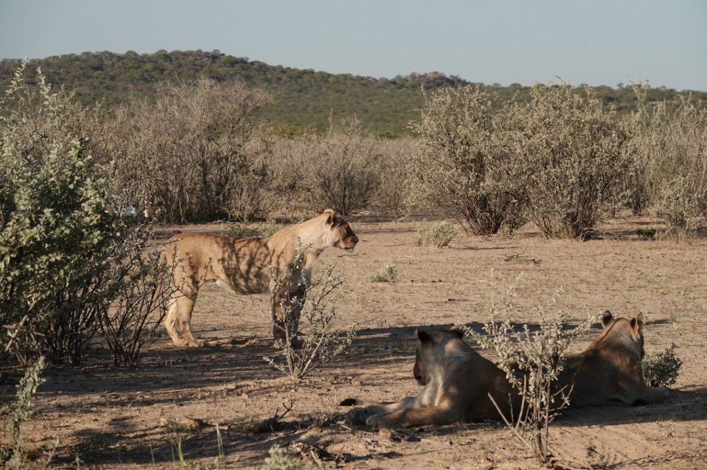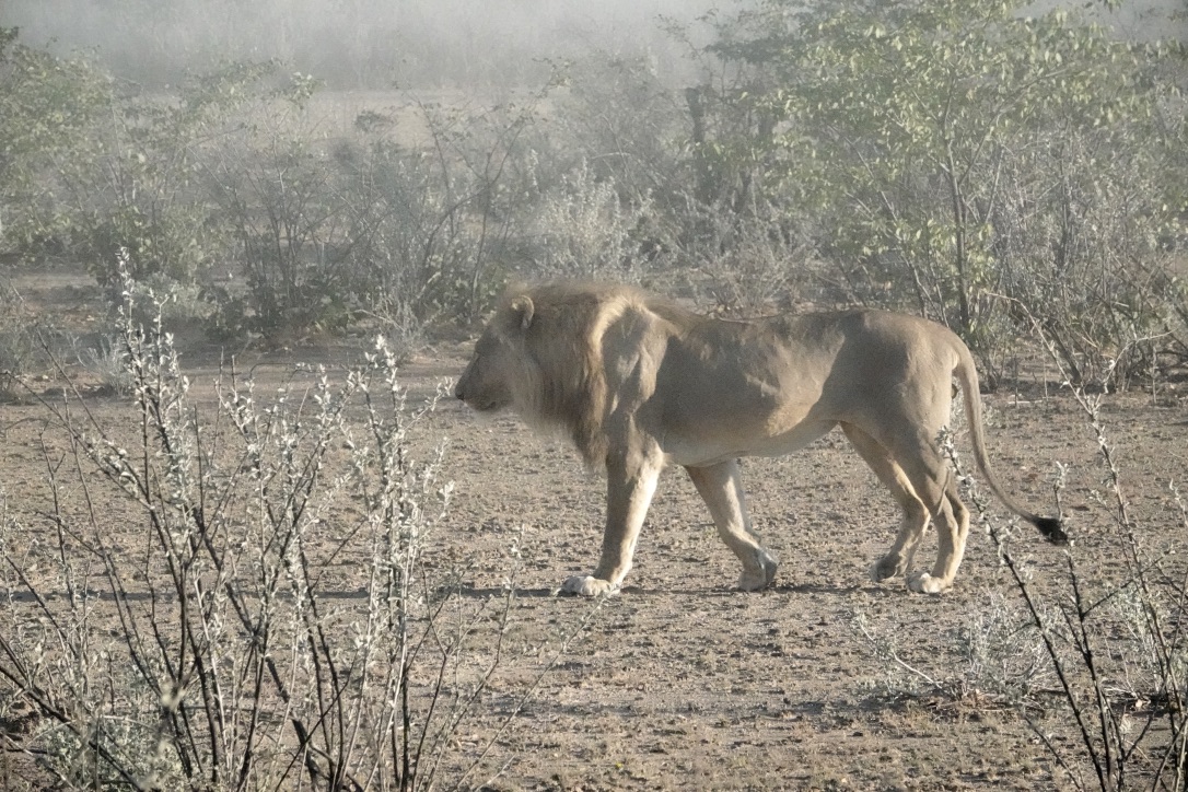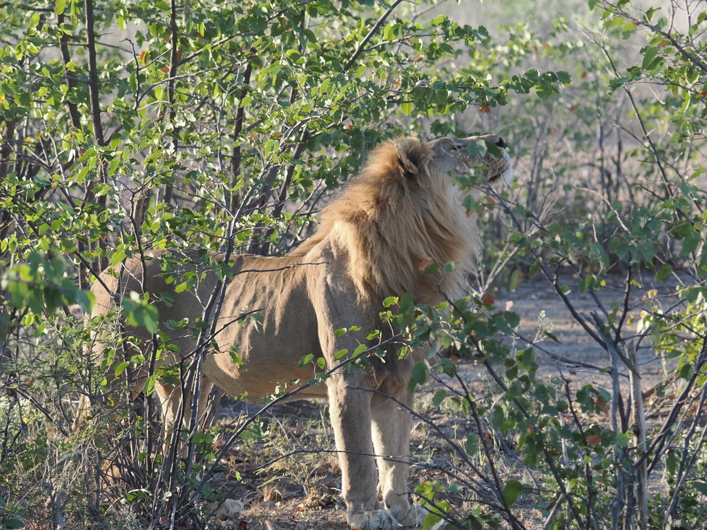 Le matin, départ à 7 heures avec Stanley, qui nous propose de chercher l’une des 4 troupes de lions. Cela commence pas mal avec ces 2 mâles dans la poussière du matin.