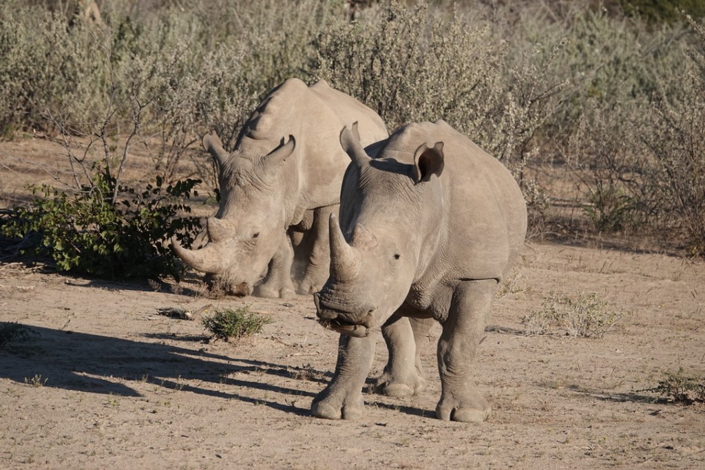 L’après-midi, c’est le sundowner drive qui démarre dès 16 heures 30. Nous retournons sur le même secteur que ce matin et tombons sur 2 rhinocéros blancs.