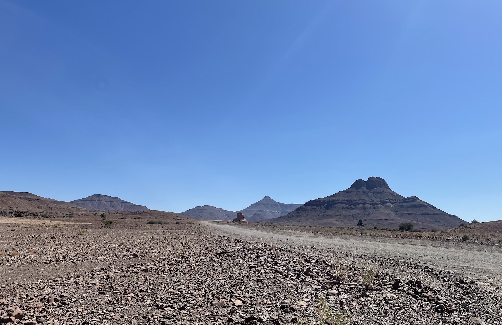 Nous quittons Sesfontein en direction du sud sur la C43 puis la C39. Les paysages du Damaraland sont époustoufflants.