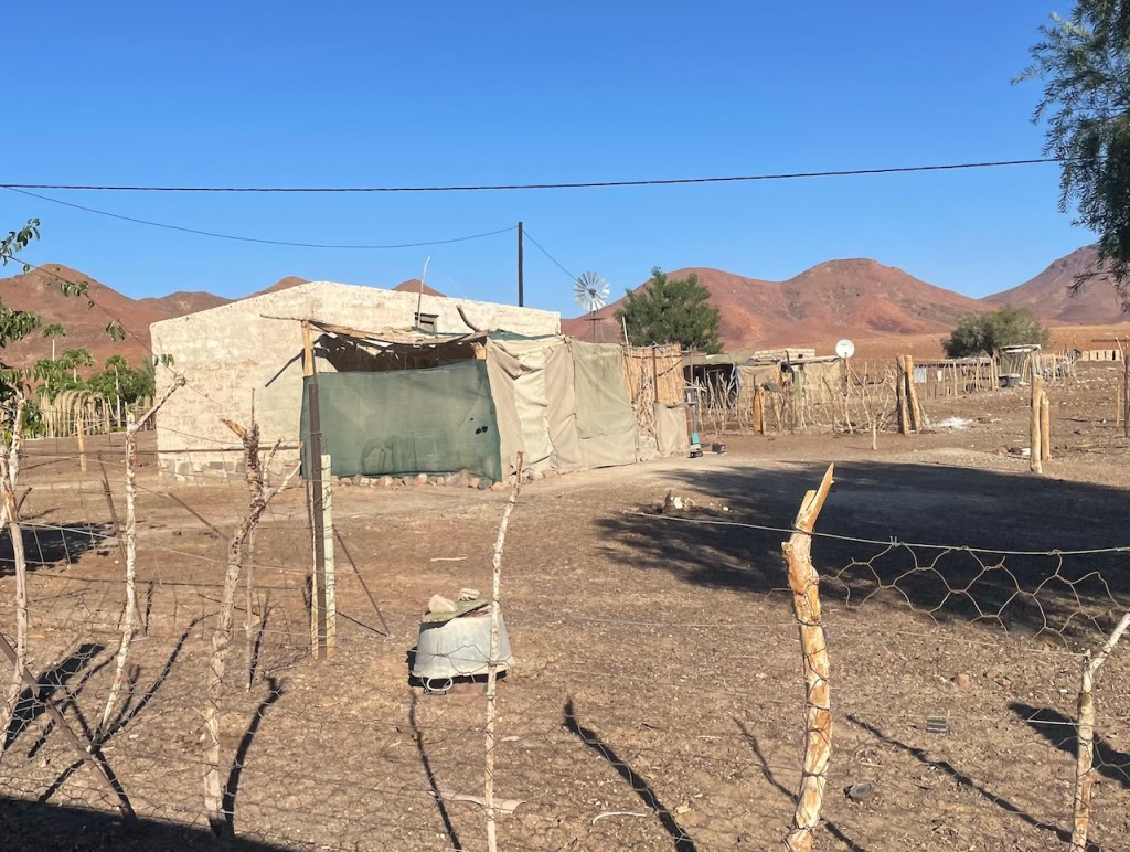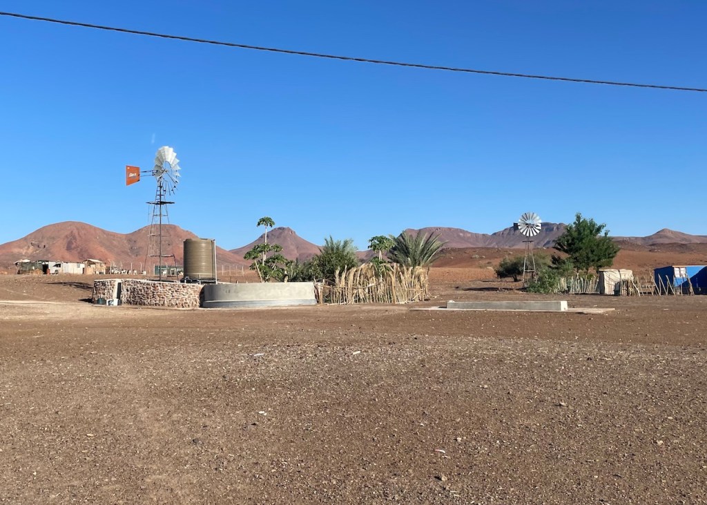 L’accès est indiqué à la hauteur de Fonteine Post. Les derniers 14 kilomètres de piste sont accessibles uniquement en 4×4, en roulant doucement. On traverse le hameau de Fonteine Farm, d’où viennent plusieurs salariés du camp.