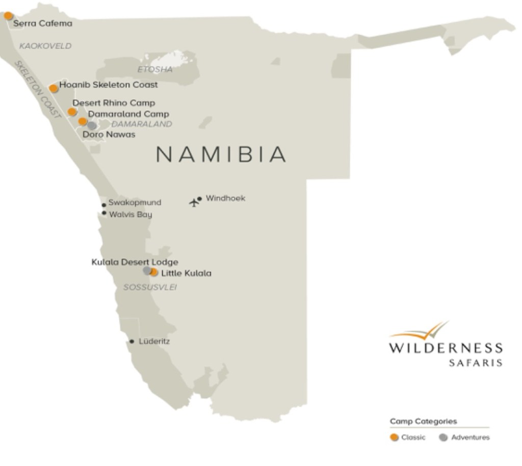Notre destination est le Damaraland Camp, situé à 90 km à l’intérieur des terres de la Skeleton Coast, sur la rive nord de la rivière Huab.