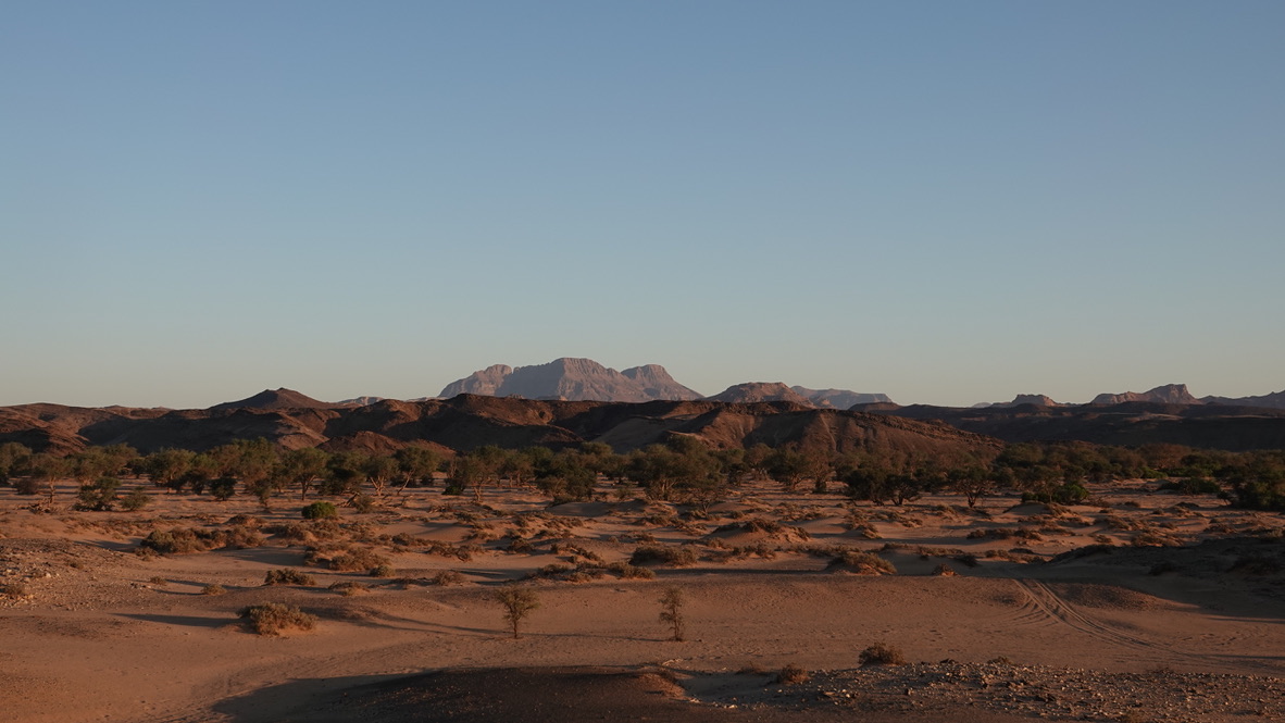 Nous sommes dans la tente n°9, l’une des 2 plus éloignées. Depuis la terrasse, les paysages invitent à la contemplation et à profiter de quelques moments de repos après la longue route depuis Hoanib Valley.