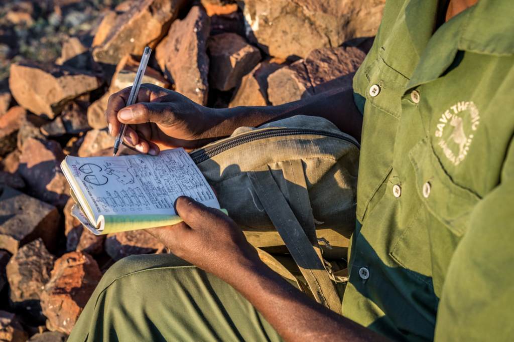 Le travail de Denzo et Simon consiste à identifier chaque individu, en renseignant une fiche assez détaillée (forme des oreilles, taille de la queue, marques spécifiques, sexe etc…). Ils prennent également des photos et notent les coordonnées GPS. Toutes ces informations sont transmises au siège de l’association à Palmwag. Deux personnes travaillent à leur intégration dans une base de données, qui est ensuite exploitée par des scientifiques et les autorités à des fins de protection.